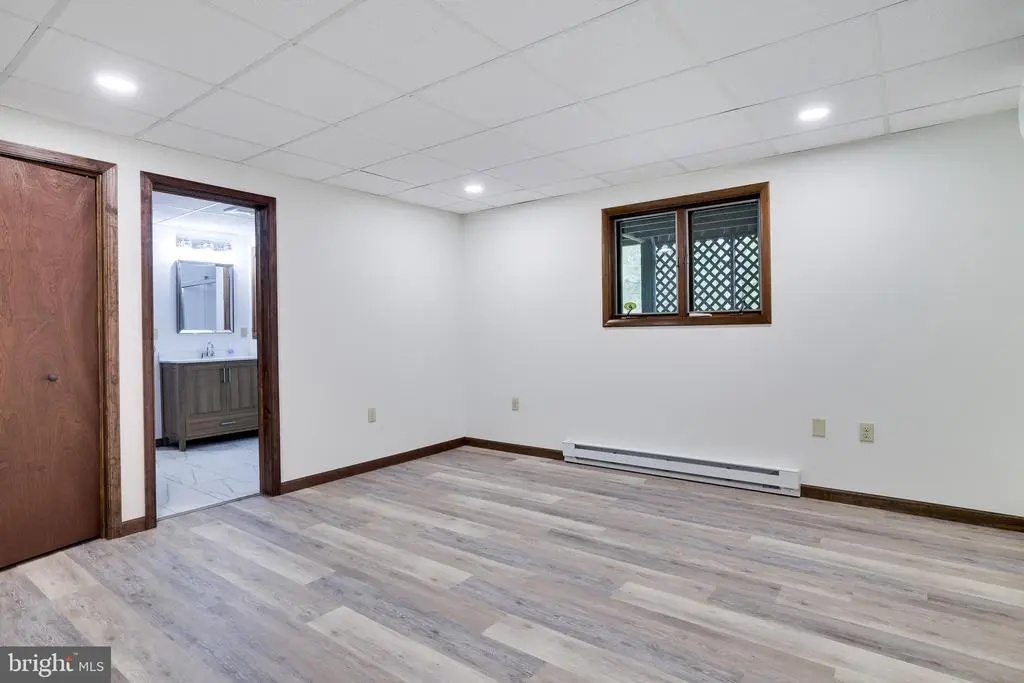 Bathroom - Tub Shower, Entry Level Bedroom, Exposed Beams, Recessed Lighting, Wood Floors