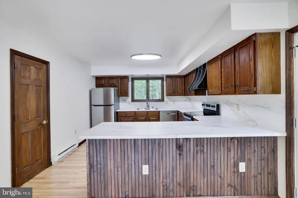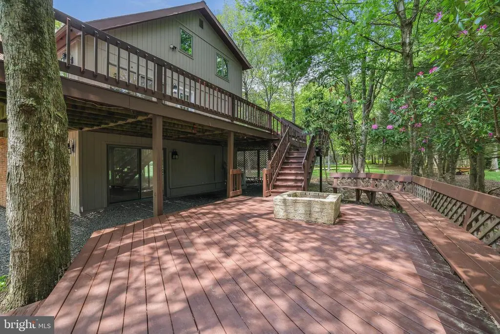 Step into this newly renovated, top-to-bottom lakeview retreat in the highly sought-after community of Bear Creek Lakes in Jim Thorpe. Every inch of this four-bedroom, three-bathroom home exudes modern comfort and style, all while embracing the natural beauty of its stunning surroundings. Inside, the sun-drenched living room is a showstopper, featuring exposed beams, a stately brick fireplace, and soaring ceilings that create a warm and inviting atmosphere. Three sliding doors open seamlessly onto a sprawling wrap-around deck, perfect for soaking in the breathtaking lake views and entertaining guests. The kitchen is equipped with newer appliances and blends functionality with style, while the primary bedroom—just off the main living area—features its own private access to the deck and an ensuite bath adorned with sleek, modern fixtures. Up the brand-new staircase, the loft area offers endless versatility—ideal as an office, playroom, or guest sleeping area. Two additional bedrooms and a newly finished hall bath round out the upper level, providing comfortable accommodations for family and friends. The lower level is a haven of its own, offering a spacious family room with a second brick fireplace, a private bedroom with a gorgeous ensuite bath, and even more sliding doors that invite the outdoors in. The massive two-car garage includes attic storage, ensuring ample space for all your gear and seasonal items. Outside, the first-level deck features built-in bench seating and a cozy brick firepit—perfect for gathering on cool mountain nights. A newly installed septic pump, newer electrical and plumbing, fresh paint, new flooring throughout, and efficient ductless mini-split systems (for both heating and cooling) offer peace of mind and year-round comfort. Best of all, the cabin is just steps from Penn Forest Park, community access to a sandy beach right across the street, a sparkling pool, and tennis courts. Plus, a backyard shed offers even more storage for your lake life essentials. This beautifully reimagined home isn’t just a getaway—it’s an opportunity to create lifelong memories in one of the most picturesque locations in the Poconos. Don’t miss your chance to make this gorgeous lakeview escape your own!