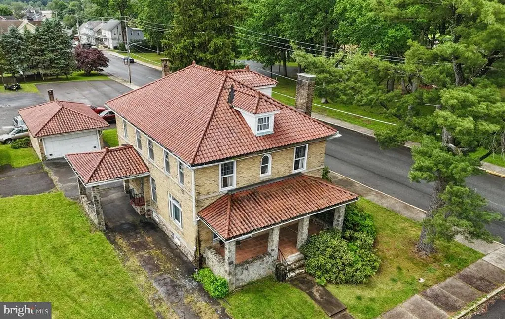 Welcome to this American Foursquare home perfectly situated on a corner lot in the West end of Lehighton. This residence boasts four large bedrooms, two full baths, eat-in kitchen plus dining room, first floor laundry and mud room, sun room, expandable attic and 2 car garage. The beautiful woodwork and elegant details throughout the home add character, highlighting the craftsmanship typical of this architectural style. An efficient gas heating system and fireplace ensure warmth in the colder months and central air will keep you cool in summer. The timeless classic features of the porte-cochère, terracotta roof, the tiled vestibule, cut glass entry door, and crystal door knobs together with your personal updates will make this home feel like a modern manor. Seller offering a home warranty for buyer peace of mind. Call for a walkthrough today, fall in love and make an offer.