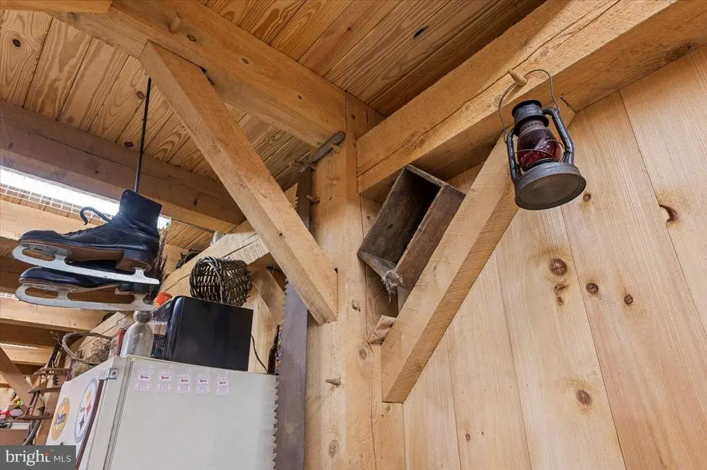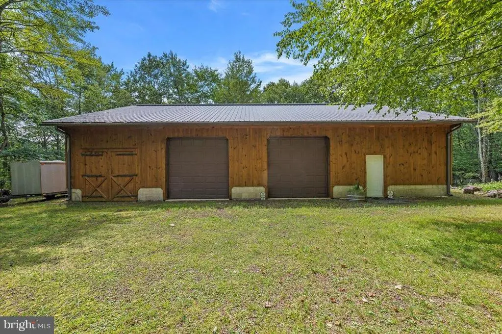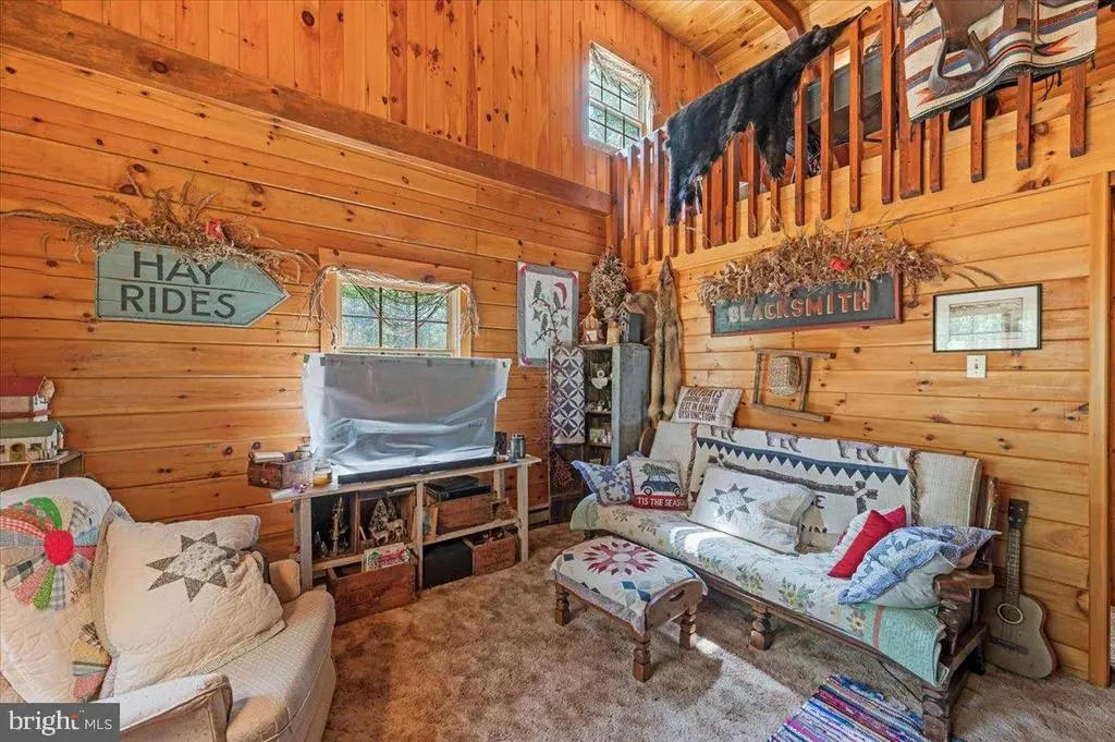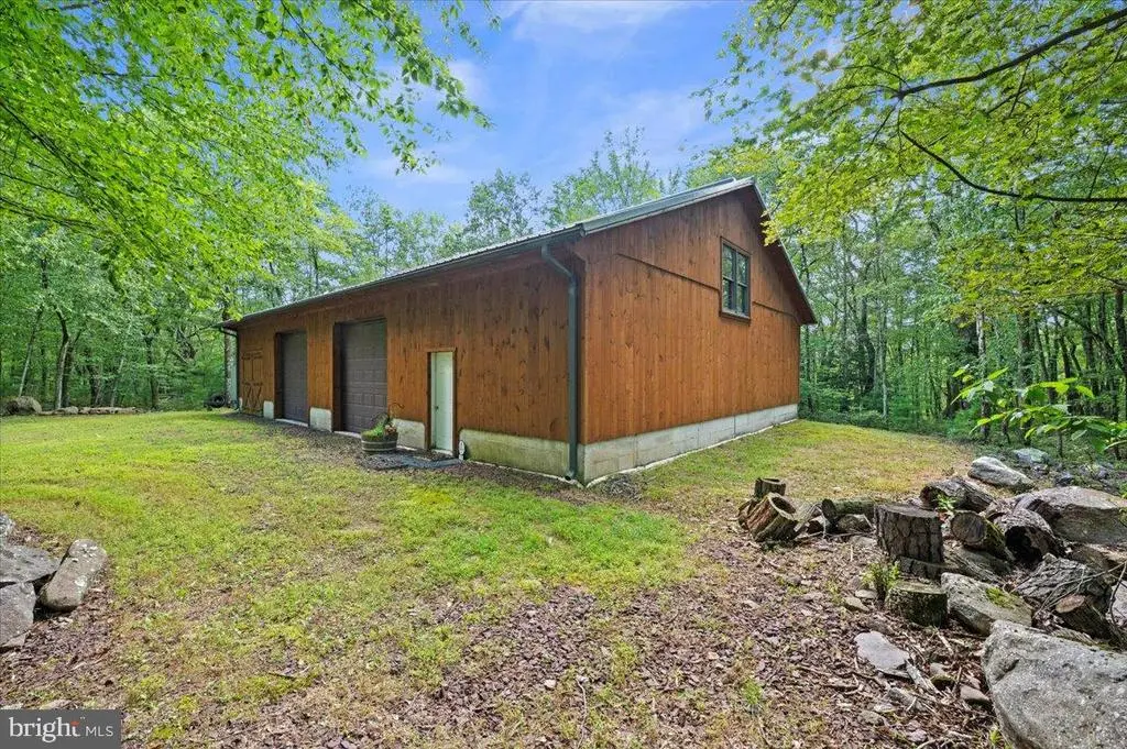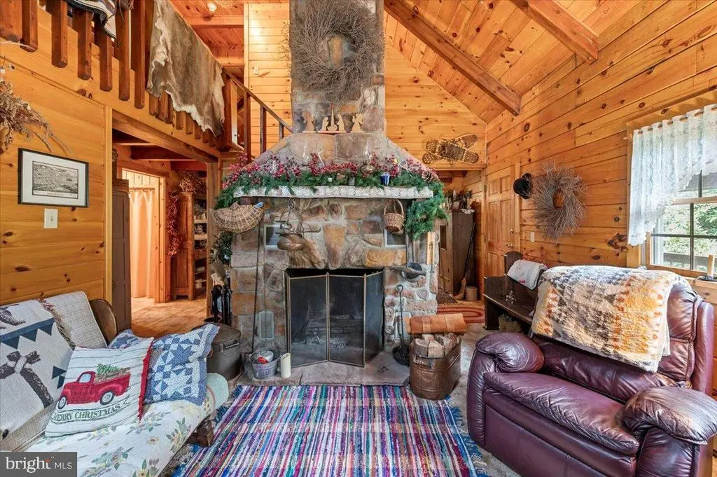 Secluded log cabin retreat on 6.08 wooded acres in Hickory Run Forest, just minutes from downtown Jim Thorpe and the PA Turnpike. This 3-bedroom, 2-bath home showcases timeless craftsmanship with hand-hewn log construction, vaulted ceilings, exposed beams, tongue-and-groove pine walls, and a dramatic floor-to-ceiling stone fireplace. A loft overlooks the great room, offering flexible space for guests, a home office, or a third sleeping area. The walk-out basement with propane fireplace provides additional utility, recreation, or storage. The property’s true highlight is the 60x40 Amish-built detached garage/workshop, valued at over $200K. Built with extraordinary craftsmanship, it features three oversized bays, full concrete flooring, built-in workbenches, kitchenette, utility sink, professional lighting, and a finished lofted entertainment space. This versatile structure is ideal for contractors, car enthusiasts, collectors, or creative pursuits. Adding to the value, Hickory Run Forest permits short-term rentals (STRs), with community approval and subject to a 10% cap—an exceptional opportunity for those seeking investment potential alongside personal use. With 11 additional parcels included in the sale, this property ensures privacy, future flexibility, and long-term appeal. Whether a full-time residence, weekend retreat, or income-producing asset, 15 Locust Drive represents the very best of log cabin living in the Pocono Mountains.