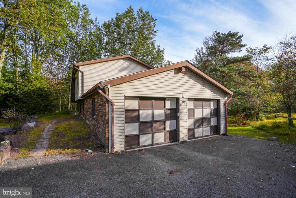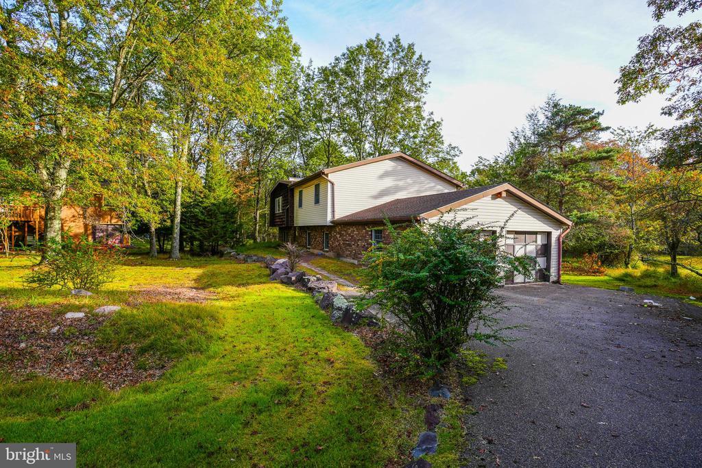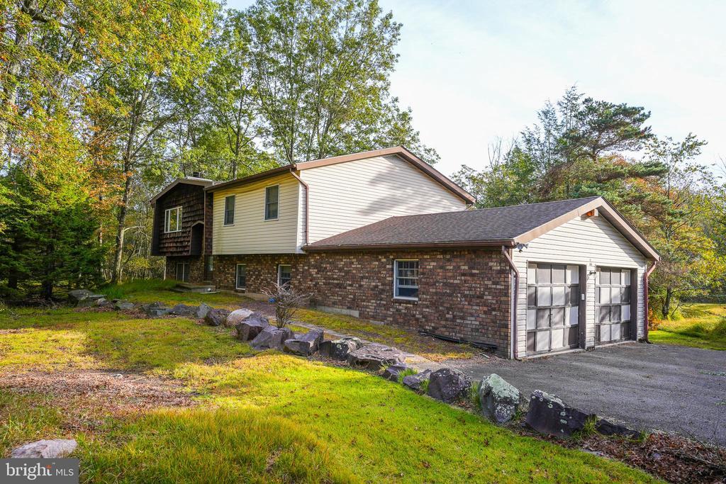 TOWAMENSING TRAILS—4BR/2.5BA bilevel on a serene wooded lot with great community amenities! Residents enjoy access to a 190-acre lake, sandy beach, outdoor pool, clubhouse with lounge/restaurant, boat rentals, and sports courts/playgrounds (badges required for amenities). Outside, a paved drive leads to the 2-car attached garage, plus a rear deck and shed. Inside, the main level features an open flow between the living room with fireplace, kitchen with laundry, and dining room with deck walkout, plus a convenient primary bedroom with private half bath. The lower level provides excellent finished space with a full bath, office area, large family room, and a sunroom—great for hobby/work-from-home or extended living. Just minutes to Lake Harmony (skiing, water sports, dining), Historic Jim Thorpe (Asa Packer Mansion, Old Jail Museum, shops), and Lehigh Gorge State Park with hiking, biking, and whitewater rafting. Fantastic location for four-season Pocono fun and easy commuting via PA Turnpike/I-476 and Rt 903. Sale is AS-IS; buyer responsible for all inspections and repairs, including septic pumping.