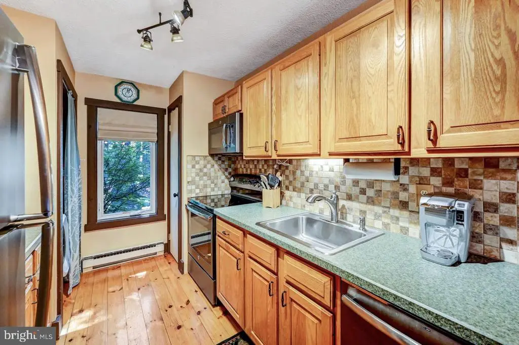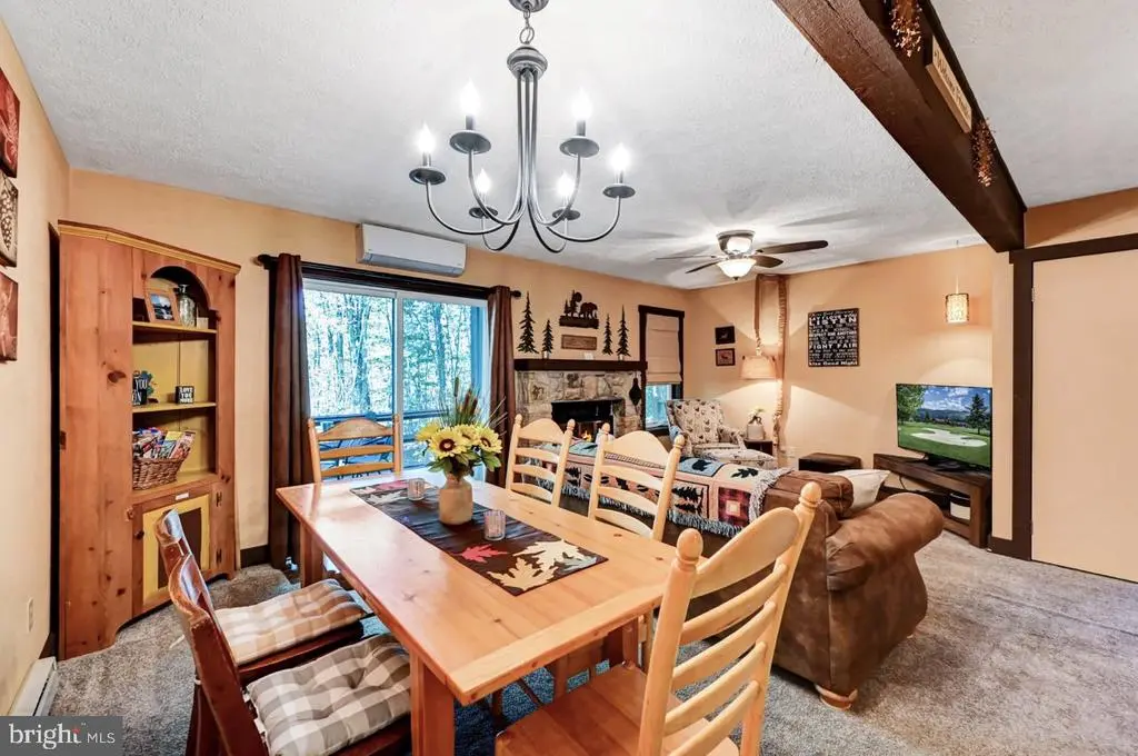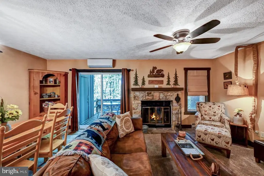 JACK FROST MUST SEE! 5 star rating on VACATION RENTAL! 2 bedrooms 1 1/2 bath totally renovated turnkey townhome. Just bring your clothes and enjoy all the POCONOS has to offer. A great investment (home has an excellent rental history), fun vacation home, or perfect as a primary home. Slate GE appliance pkg, full sized washer and dryer, new H20 heater, Tile backsplash, all windows replaced, New Storm door, Keyless Entry, 3 Zone Ductless AC/Heat. Wood Burning FP. Mountain decor and furnishings. Ski Trail minutes to top of the slopes. Affordable HOA fee includes landscaping, snow removal right to front door!, trash removal, water, sewer, cable/IT, exterior staining!
