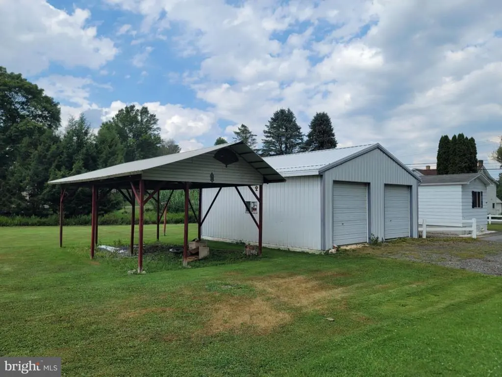 This well-cared-for home sits on a beautiful , level .57-acre lot and features a 2-car detached garage, pavilion, and barn—ideal for storage, hobbies, or entertaining. The front yard is lined with white decorative fencing and a partially covered front porch, offering a welcoming space to enjoy both sun and shade. Inside, you’ll love the thoughtful layout, featuring a spacious living room with a cozy fireplace, and a bright eat-in kitchen with ample cabinetry, pantry, and closet space. One side of the home includes the primary bedroom, full bath, and laundry area; the other offers a second bedroom with its own half bath—perfect for guests or a home office. The back entryway features warm wood walls and additional storage closets. Great storage throughout, plus a brand-new natural gas furnace for peace of mind. Contents remaining in the home are available for purchase.