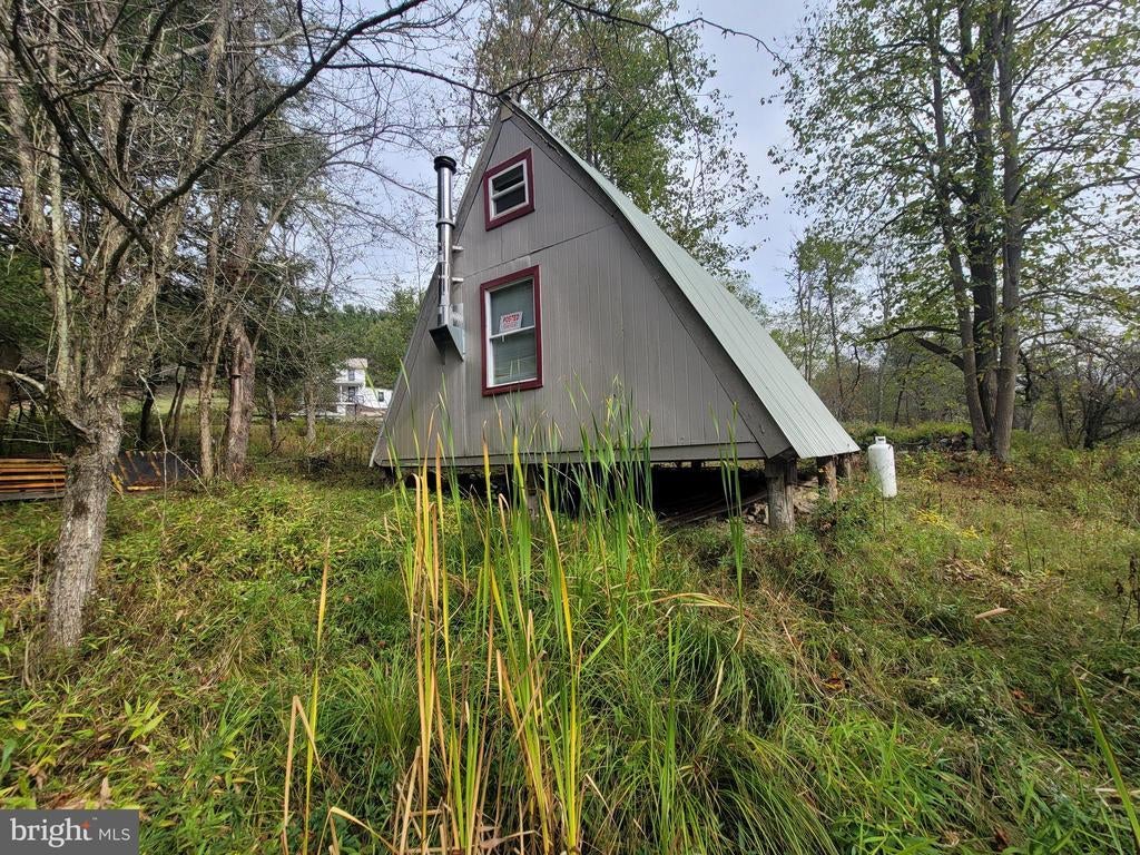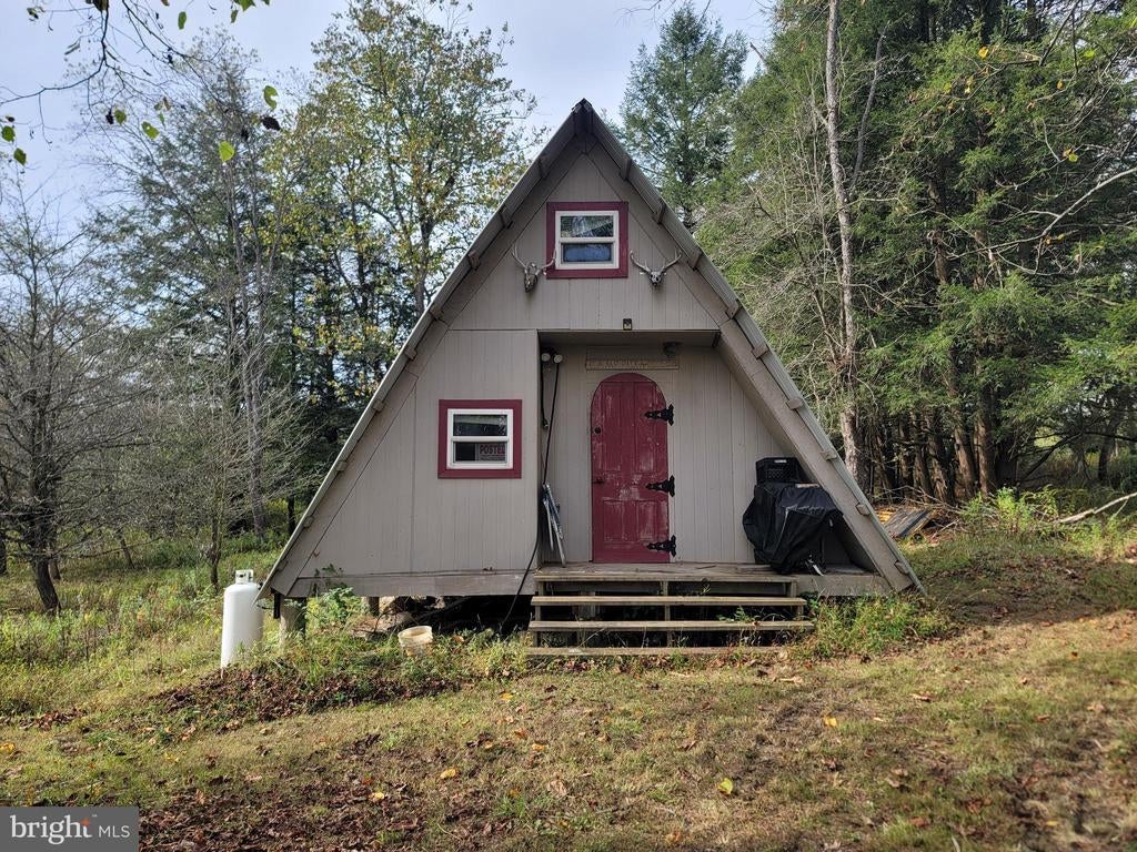 An adorable little A frame camp in a spectacular location on a dead end street and right along rails to trails. 2 wells on the property, the one in use is a 6ft-8ft stone well with a hand pump. An outhouse and a generator hookup for electricity. 2 Acres backing to a small stream. Public Sewer is available just a long the trail head if you'd like to add a bathroom in the future. Propane stove, fridge and lights. Come take a look!