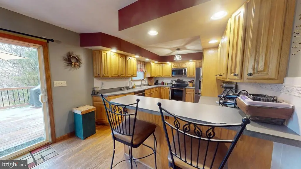 Charming 4-Bedroom, 4-Bath Home at the Base of Mount Nittany Nestled on a corner lot in the quiet neighborhood of Nittany Orchard in Lemont, this spacious home is just minutes from State College, Penn State, and major routes (26, 322, & I-99). A large addition in 2002 transformed the home, adding a stunning 23x14 master suite with a vaulted ceiling, a luxurious master bath featuring double sinks, a jetted tub, and a separate shower, plus an 11x7 walk-in closet and two additional closets. The renovation also introduced new windows, doors, and trim throughout. The open floor plan highlights a generously sized dining room (complete with a pellet stove added in 2017), a living room, and a fully updated kitchen with oak cabinetry, laminate countertops, and recessed lighting. Hardwood floors flow through the living and dining rooms, kitchen, hallway, and stairs, while the bedrooms are carpeted, and all four bathrooms are finished with tile flooring. The lower level offers a versatile family room, bedroom/office with a private bath, walk-in closet, and separate entrance, making it ideal for an in-law suite or short-term guest accommodations. Adjacent is a partially finished workshop with a utility sink and garage door access. Step outside to enjoy the fully fenced backyard, complete with a 14x18 deck offering scenic views of Beaver Stadium. A storage shed with a loft adds convenience. This home combines comfort, functionality, and proximity to amenitiesâperfect for modern living.