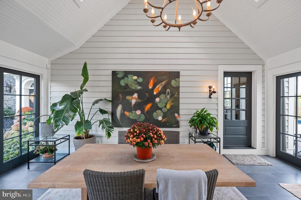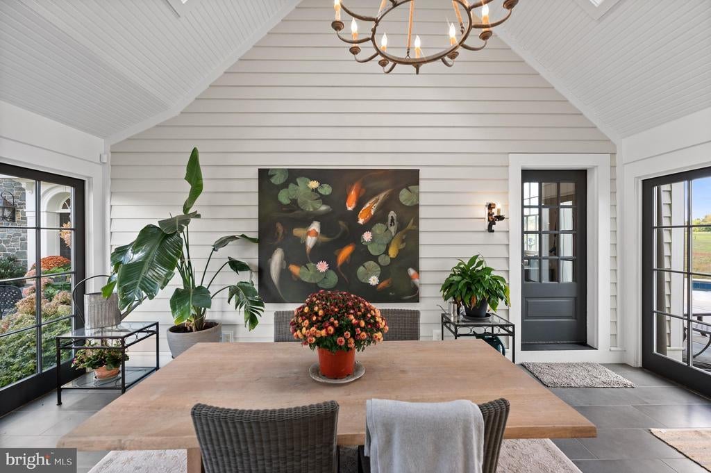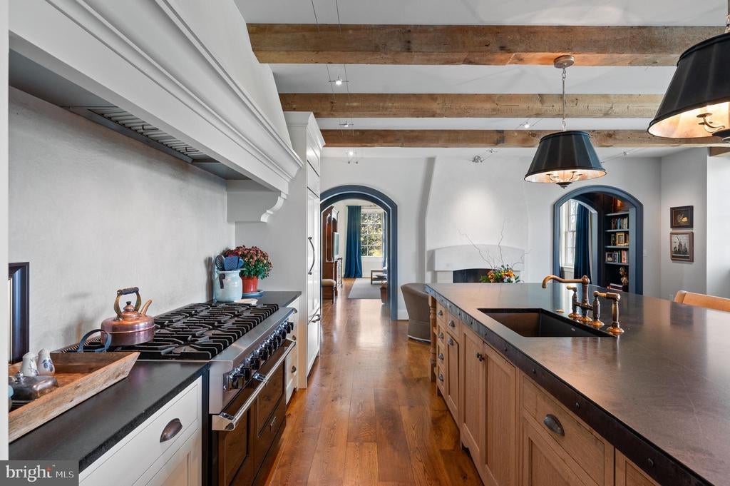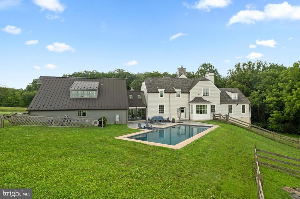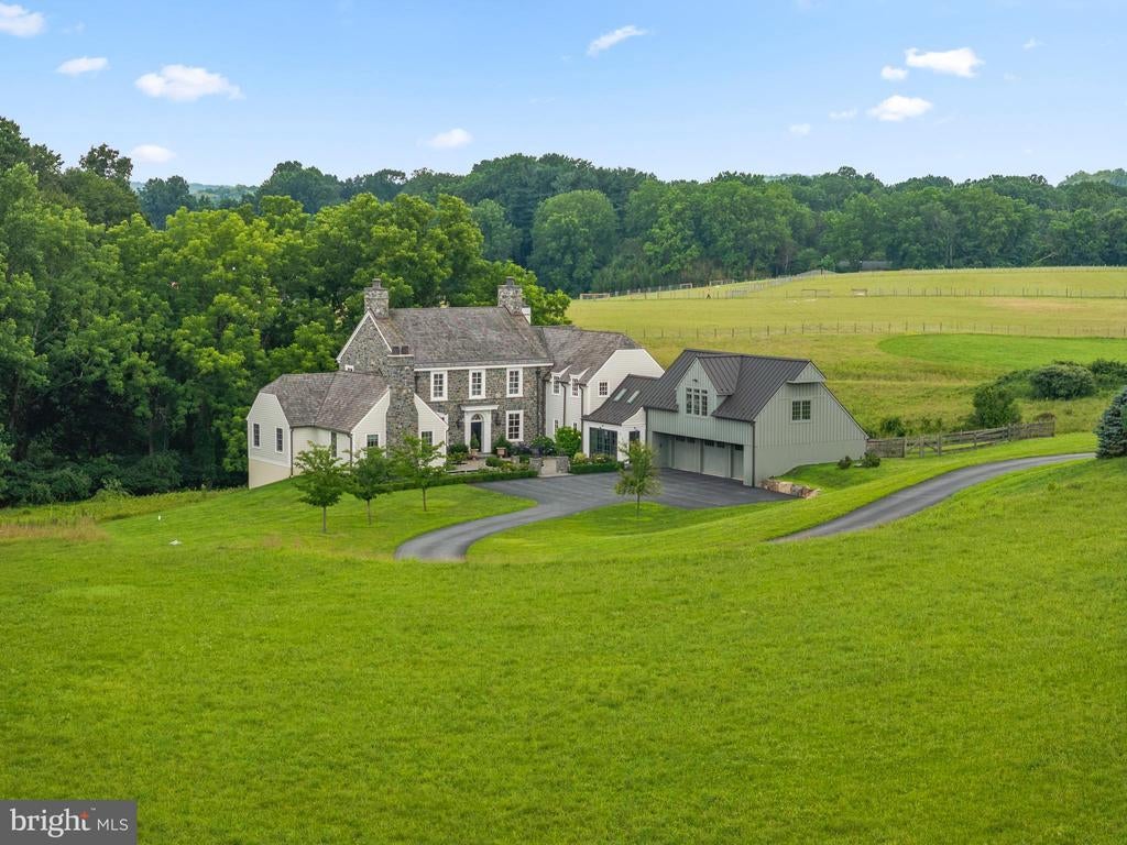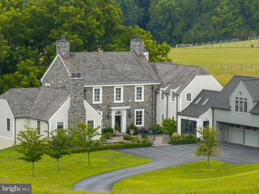 NEW PRICE! Stag & Thistle Farm is an extraordinary English Manor Country Estate set on over 44 acres, conveniently located just outside the picturesque village of Marshalton, which boasts the Marshalton Inn and Four Dogs Tavern. A gated entrance and a meandering drive usher you to this ideally placed residence, designed by Period Architecture and built by luxury builder Porter Construction in 2018. It beautifully blends centuries-old charm with the efficiency and modern conveniences of the 21st century. Nestled within the natural contours of rolling hills, this spacious home spans over 8,000 square feet and includes the potential for further expansion with an unfinished lower level of an additional 5,000 square feet. The entryway to this Stone Manor Home is via a lovely courtyard featuring a fountain and perennial gardens that provide vibrant color from early spring until fall. This grand yet inviting residence showcases timber trusses, plaster finishes, custom millwork, a groin ceiling, and various other exquisite elements. To the right, through custom-crafted arched doorways, lies an expansive gourmet kitchen featuring a breakfast nook that offers sweeping views of the rolling hills and countryside, an in-ground heated saltwater pool surrounded by elegant hardscaping, and stunning vistas of a 3-acre vineyard. This luxurious kitchen is equipped with top-tier appliances, a Tadelakt backsplash, soapstone countertops, a limestone-framed fireplace, an 8-burner range, and a Wolf Oven. The arched doorways lead into the family room, which boasts a vaulted ceiling, timber trusses, and a cozy wood-burning fireplace. The residence is awash with abundant natural light. The kitchen also has pocket doors that open into a spacious dining area, adorned with exquisite moldings. Nestled in its own private wing on the first floor, the primary suite features a vaulted ceiling, a fireplace, a lavish primary bath, and an adjoining laundry area. The first floor also includes an office with a fireplace that overlooks the woodlands. On the second floor, you will find three en-suite bedrooms along with an additional family room. A convenient mudroom, complete with a dedicated dog wash, provides access to a breezeway. Large stacking doors to the pool area on one side and the courtyard on the other. The breezeway also gives access to the garage and second floor art studio. Enjoy unparalleled views of the countryside from every room. Easy access and a 7-minute drive to West Chester, Kennett Square and Downingtown. 35-minute drive to King of Prussia, 50 minutes to Philadelphia, 2 hours to New York and 2 to Washington, DC.