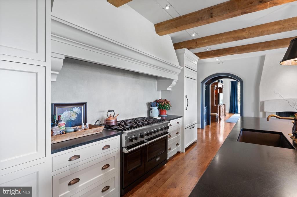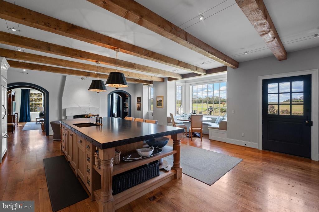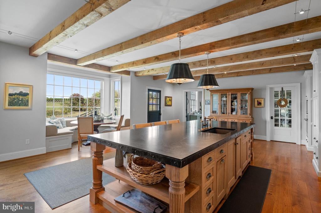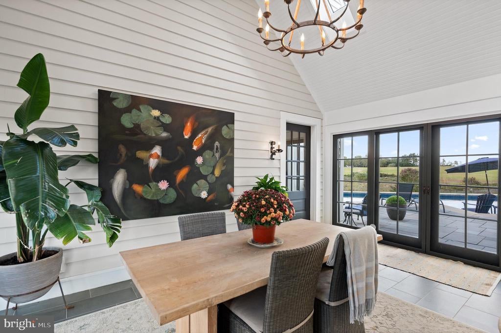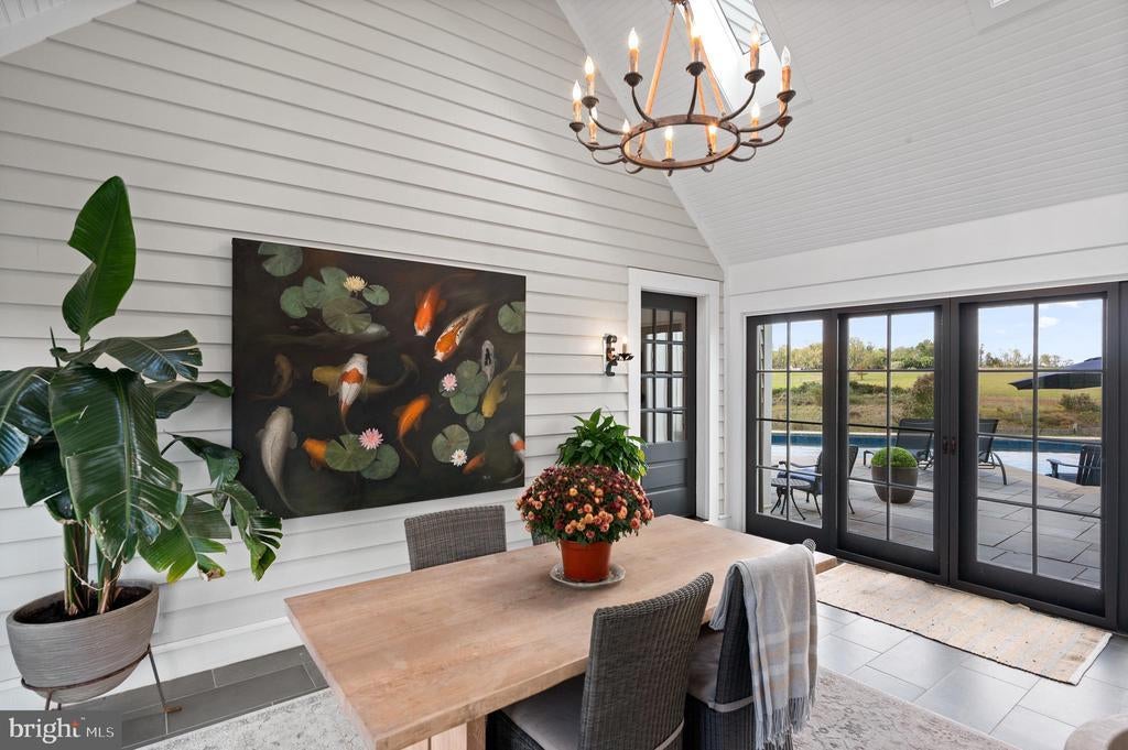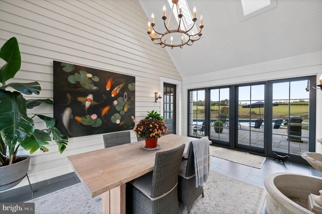 NEW PRICE! Stag & Thistle Farm is an extraordinary English Manor Country Estate set on over 44 acres, conveniently located just outside the picturesque village of Marshalton, which boasts the Marshalton Inn and Four Dogs Tavern. A gated entrance and a meandering drive usher you to this ideally placed residence, designed by Period Architecture and built by luxury builder Porter Construction in 2018. It beautifully blends centuries-old charm with the efficiency and modern conveniences of the 21st century. Nestled within the natural contours of rolling hills, this spacious home spans over 8,000 square feet and includes the potential for further expansion with an unfinished lower level of an additional 5,000 square feet. The entryway to this Stone Manor Home is via a lovely courtyard featuring a fountain and perennial gardens that provide vibrant color from early spring until fall. This grand yet inviting residence showcases timber trusses, plaster finishes, custom millwork, a groin ceiling, and various other exquisite elements. To the right, through custom-crafted arched doorways, lies an expansive gourmet kitchen featuring a breakfast nook that offers sweeping views of the rolling hills and countryside, an in-ground heated saltwater pool surrounded by elegant hardscaping, and stunning vistas of a 3-acre vineyard. This luxurious kitchen is equipped with top-tier appliances, a Tadelakt backsplash, soapstone countertops, a limestone-framed fireplace, an 8-burner range, and a Wolf Oven. The arched doorways lead into the family room, which boasts a vaulted ceiling, timber trusses, and a cozy wood-burning fireplace. The residence is awash with abundant natural light. The kitchen also has pocket doors that open into a spacious dining area, adorned with exquisite moldings. Nestled in its own private wing on the first floor, the primary suite features a vaulted ceiling, a fireplace, a lavish primary bath, and an adjoining laundry area. The first floor also includes an office with a fireplace that overlooks the woodlands. On the second floor, you will find three en-suite bedrooms along with an additional family room. A convenient mudroom, complete with a dedicated dog wash, provides access to a breezeway. Large stacking doors to the pool area on one side and the courtyard on the other. The breezeway also gives access to the garage and second floor art studio. Enjoy unparalleled views of the countryside from every room. Easy access and a 7-minute drive to West Chester, Kennett Square and Downingtown. 35-minute drive to King of Prussia, 50 minutes to Philadelphia, 2 hours to New York and 2 to Washington, DC.