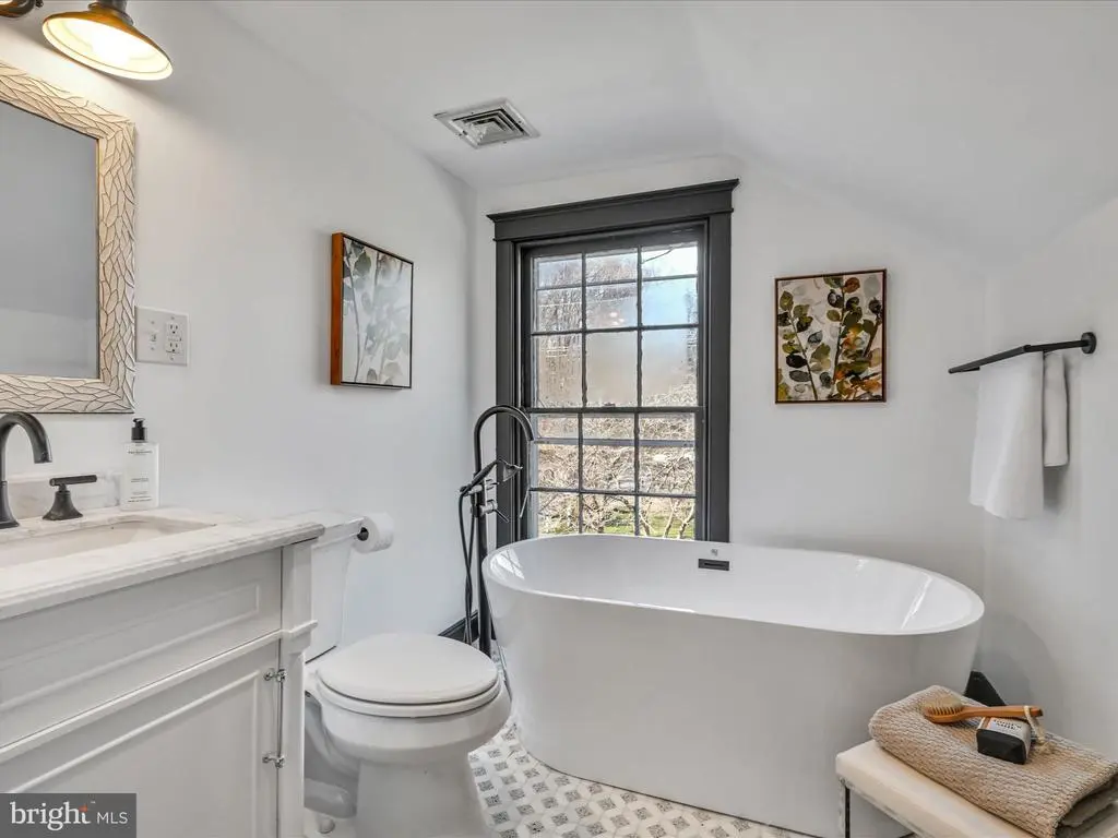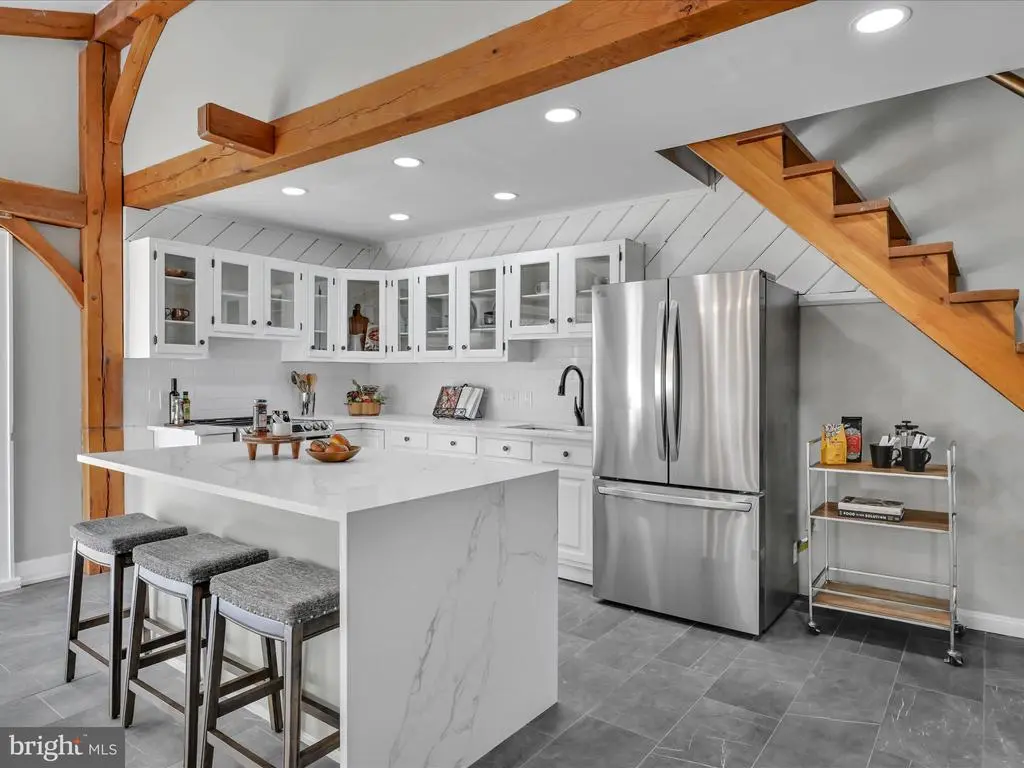 Discover the perfect blend of history, charm, and opportunity with this extraordinary property in Landenberg, PA, amongst the rolling hills of Chester County. This stunning 1872 residence has been meticulously renovated and is situated next to the thriving Landenberg Store, a beloved small-town general store. Live in a home that seamlessly combines classic old-world charm with contemporary conveniences, and operate a successful business right next door! With approximately 3,200 square feet of living space and an additional 2,200 square feet of commercial space, this property offers plenty of living space for all to spread out, and a commercial space that is well-known and cherished amongst the locals. The residence is a masterpiece of modern updates and timeless appeal. On the main floor, a beautifully designed kitchen features new stainless steel appliances, a large island with a quartz waterfall edge and barstool seating, white cabinets with glass fronts, connected to a spacious dining area with a vaulted ceiling with charming beams, surrounded by windows and sliding doors that offer panoramic views of White Clay Creek. The cozy informal family room flows into a more formal living room with a half bath, while a charming library near the entrance currently serves as a second office- wait until you see the beautiful built-in shelving! Off of the family room, accessible via a private staircase, you will find a spacious bedroom with a brand new ensuite bath. This room offers built-in custom bunk beds a convenient sink. The main staircase leads to two additional bedrooms, each with its own bath, and an upper-level deck spanning the width of the home. A private one-bedroom in-law suite with its own deck and entrance at the back of the second floor is perfect for in-laws or guests. On the third floor, the primary suite is a sanctuary, complete with a luxurious new ensuite bathroom with new tub and shower with glass shower enclosure, built-in shelving, and a blank-canvas walk-in closet space, as well as a private balcony overlooking the serene landscape. Throughout the entire residence you will find designer lighting and fixture selections, high ceilings + baseboards and intricate crown molding detail. The original hardwood flooring maintains the 1870's appeal while the other selections compliment the era seamlessly. The Landenberg Store is a well-established community hub known for its warm and inviting atmosphere and known local favorite, Creekside Coffee. The store offers breakfast, lunch, and dinner, with a menu that features specialty sandwiches, fresh baked goods, and signature items like penny candy and local ice cream. Popular with locals and visitors, the store also showcases products from local artists, hosts a free book and puzzle exchange, and serves as a resource for community referrals and friendly advice. With a loyal following of over 3,000 people on Facebook, it continues to thrive as a neighborhood favorite. Located at 100 Landenberg Road, this unique property is both a dream home and a business opportunity. Its classification as a commercial property, it presents an unparalleled chance to own a piece of Landenberg’s rich history. If you’re looking to run a successful business and enjoy life in a historic and beautifully renovated home, this property offers an incredible lifestyle in a picturesque setting, well known for hiking and biking at the nearby Landenberg Junction Trail, swimming in the creek, as well as a backdrop for a photography session- a truly beautiful nature scene surrounds you! Don’t miss out on this one-of-a-kind opportunity!