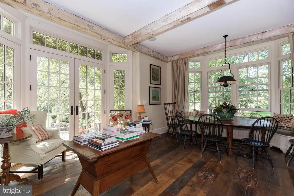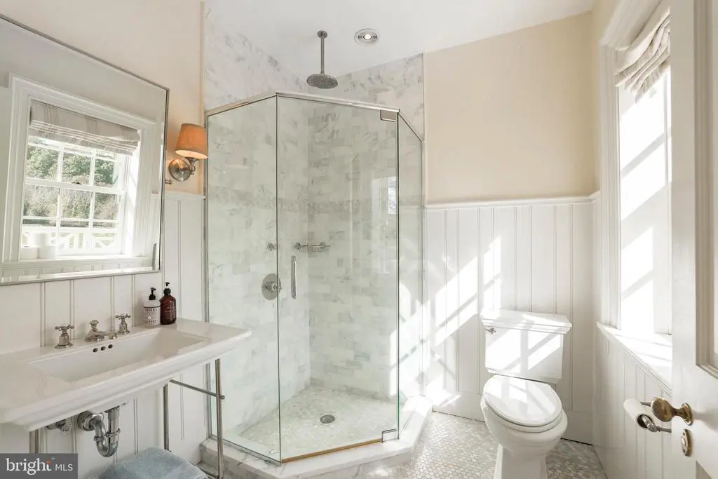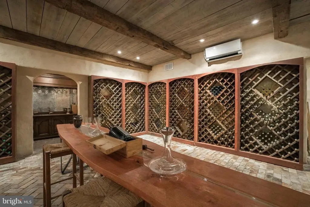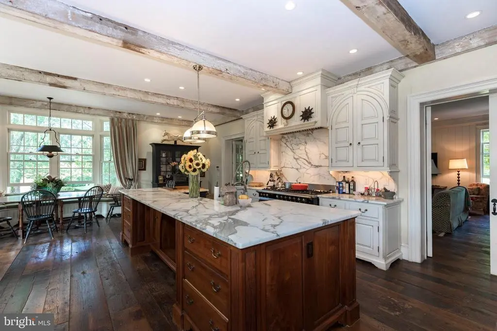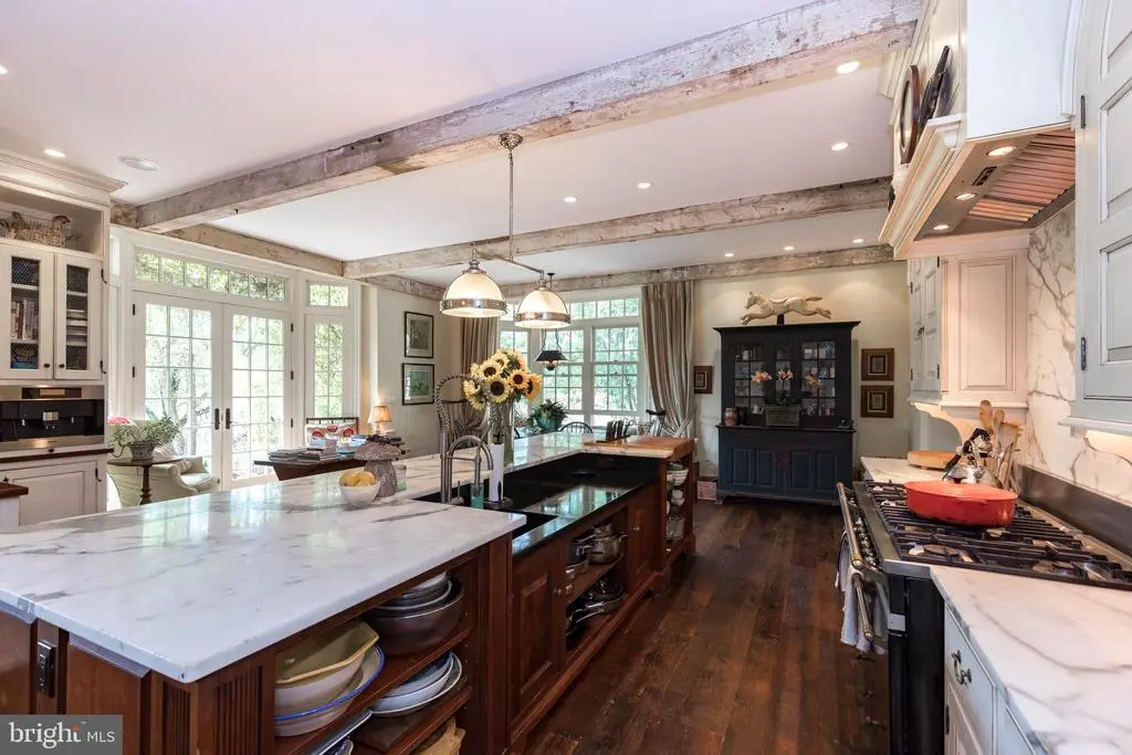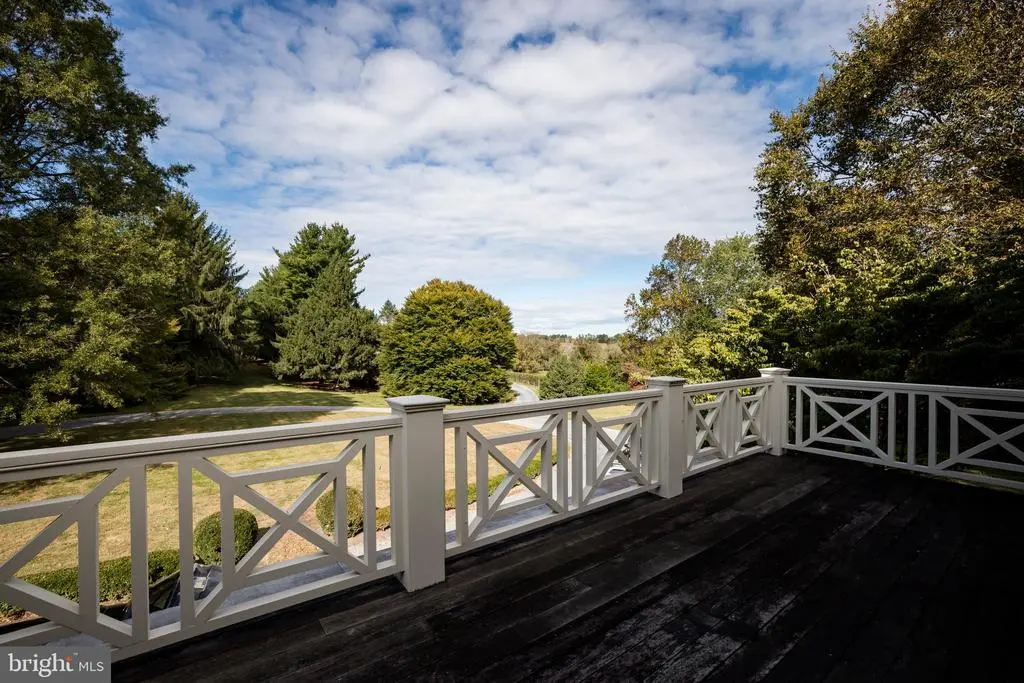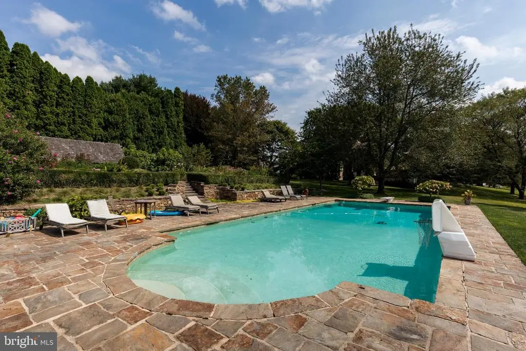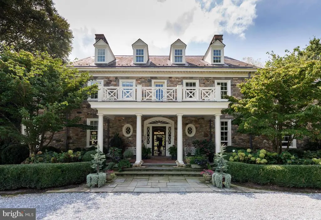 Fox Hill Farm, nestled in the heart of Chester County's bucolic horse country, is an exquisite country estate and income-producing equestrian facility that evokes the best of Europe and Southeastern Pennsylvania. Situated on 80+ acres, the home was designed in 2006 by renowned architect, Richard Buchanan, who was recently named to the Forbes Top Residential Architects 2025 list. The property retains the charm of the historic farm through the rolling topography, original spring house, and barns. The home offers an abundance of modern amenities while maintaining the authentic feel of a historic fieldstone estate. Enter the stone driveway, past mature trees and horse pastures before being welcomed by mature boxwoods and garden hydrangeas at the front entrance featuring a 19th century mahogany door with period antique hardware. The foyer's black and white checkerboard Italian marble tile once graced an English manor home. Cross 200-year-old French Oak floors imported from a French chateau to discover a music room fitted for a grand piano, an elegant living room, and arched doorways to a dining room that allows views of the home's beautiful landscape. Tall ceilings and farmhouse wood floors lead to an expansive family room where one can relax in front of a large open-hearth fireplace. The kitchen was designed with reclaimed hardwood floors and exposed ceiling beams. Foodies will rejoice at the kitchen’s amenities including gorgeous white marble countertops, a custom butcher block, a soapstone prep area with sink, a Lacanche range with 3 ovens, warming drawers and 7 burners, side-by-side full size Sub Zero refrigerators/freezers, a built in Miele cappuccino maker, and a Shaws Original farmhouse sink. Outside, adjacent to the kitchen, enjoy a stone barbecue complex with both propane and wood grills. The 1200 bottle wine cellar, large butler’s pantry with a full size Sub Zero wine fridge and adjacent wet bar will complete your entertaining experience. Host guests in the formal dining room, the kitchen’s generous eat-in area or dine alfresco on the sweeping outdoor veranda while watching wildlife on the pond or in the back pastures. Climb the gracefully curved Greek ornamented staircase to five lovely second-floor bedrooms; three with two baths, an additional guest room with en-suite bathroom, and a primary bedroom suite. The Primary suite features a vast room-sized walk-in closet with built-in shoe rack and shelves, a sumptuous Jerusalem stone floored bathroom, luxuriate in the large shower and copper clad soaking tub and steam room. Catch the evening breeze from the outdoor balcony overlooking the countryside. The third floor offers ample office space, a powder room, and a spare room with a full bath that can be used as a guest room, extra library, or creative workspace. On the lower level, enjoy the movie screening room designed like a glorious Moroccan tent, another large family room, and a temperature-controlled wine cellar that holds 1200 bottles and boasts another wet sink and tasting area. There is also a pool table area, laundry room, and a large yoga/workout studio. Beyond the house, 80 acres of beautiful views and bountiful space invites picnics, parties and outdoor recreation. After a game on the tennis court, cool off in the pool surrounded by locally quarried Avondale fieldstone or relax in the newly constructed timber framed pool house with unencumbered private views of the surrounding scenery. Equestrians will indulge in all that Cheshire Hunt country offers, with endless trail riding and ample competition venues. The equestrian facility is income-generating, includes 27 total stalls, an indoor, 2 outdoor arenas and a cross country jump field. It is currently leased to an international level rider. Fox Hill Farm is within an hour of Philadelphia and an easy commute to all the major cities by railway in Downingtown or Wilmington, Delaware.