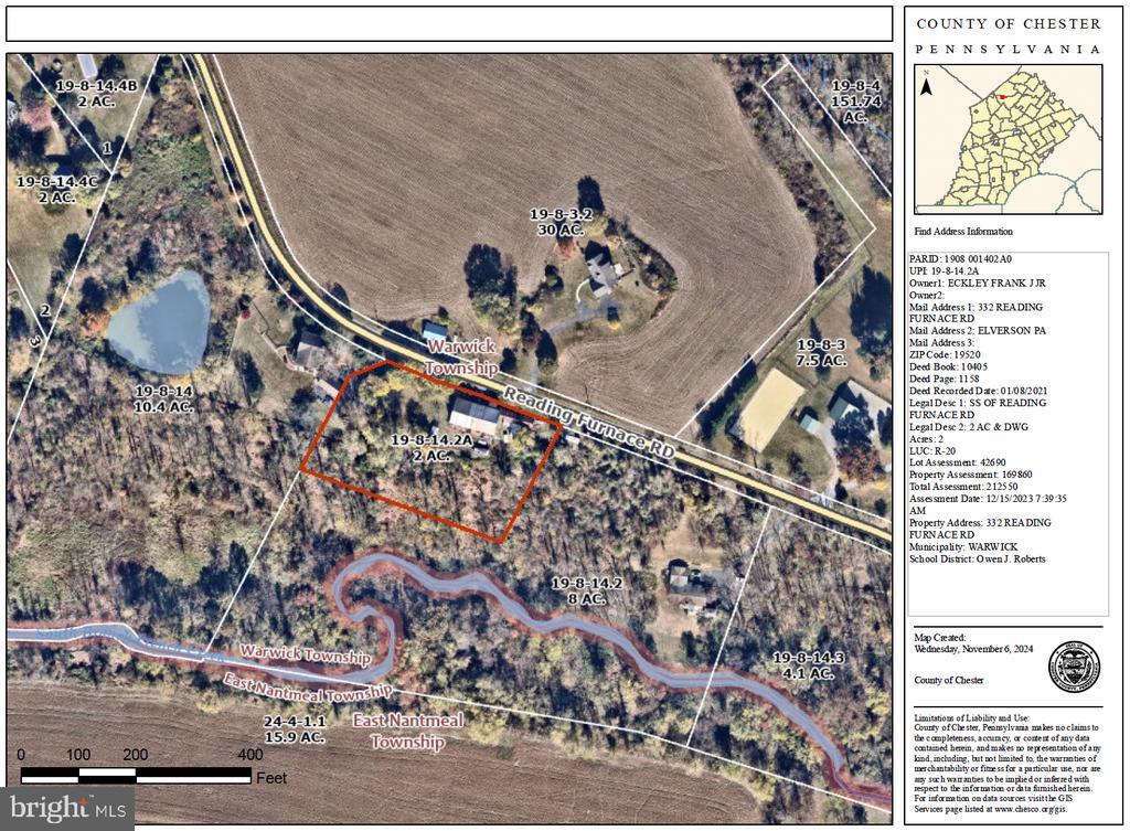 LOCATION, LOCATION, LOCATION! Bring your vision and stake your claim to this 2-acre parcel in the bucolic Chester County countryside surrounded by nearly 750 acres of preserved land. This is a unique opportunity to renovate/reimagine an 1820 stone barn that was converted to a residence in the 1970s by local architect David Quigley. Perched above the French Creek, the southern exposure provides absolutely breathtaking views over the creek and across the preserved landscape towards the Redding Furnace Farm. The large, raised deck is supported by stone beehive pillars and is the perfect place to relax in this serene setting. The location is just 1 mile from Rt 401 Conestoga Rd, for easy commuting to Malvern, Exton, and the 202 corridor. The famed Stonewall Links golf course is just 1.5 miles away. Once set up as 2 separate residences (still has 2 mailboxes), it is currently being utilized as a single home. Staircases at either end of the home provide flexibility for separation within the home if desired - live on one side while renovating the other. The layout could also be ideal for a live/work scenario or multi-generational living. The interior features plank wood floors, stone walls, and exposed wood timber beams. The main level layout is a mirror image - each "side" having a living room, kitchen, and dining room - with an easy flow throughout. The upstairs remains separated between the two sides, with 3 bedrooms, 2 full baths, and storage on each side. The east side also has a main floor bedroom with en suite bath. This property is being sold AS-IS. A minimum of 48-72 hours notice is required to schedule showings, and listing agent must accompany.