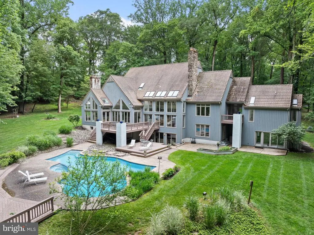Nestled in the heart of Willistown Township’s coveted Radnor Hunt country, this extraordinary contemporary home blends modern luxury with breathtaking natural surroundings. Set on 6 private acres, backing to White Manor Country club’s golf course, this light-filled retreat offers unparalleled design, comfort, and versatility. At the end of a cul de sac and down the long tree lined drive past the secondary living structure, currently utilized as an art studio, this stunning home in the most private setting awaits. Walls of glass and soaring ceilings invite the outdoors in, creating seamless transitions between expansive interior spaces and the breathtaking environment beyond. As you enter the home you are greeted by a gracious water, feature, and sunlight streaming through into the open and airy living spaces. The living room—with its sleek fireplace, wet bar, and panoramic views—anchors the open floor plan. A gourmet chef’s kitchen is open to a family room and breakfast room featuring modern lacquer cabinetry, high end stainless appliances and black countertops opens effortlessly to multiple living and dining areas, both indoors and out. A few steps up is the expansive primary suite, a sanctuary unto itself, complete with a sitting room with fireplace, private deck, dual walk-in closets, and a spa-like en suite bath. Upstairs, the open hallway takes you to the three spacious bedrooms each with generous closet space, including one with an en suite bath and two that share a Jack and Jill bath—perfect for family or guests. A private in-law or nanny suite, situated away from the main living area, with its own staircase offers its own bedroom, full bath, and sitting room tucked away for privacy. The walkout lower level is a destination of its own—featuring a private home office, spacious family room, a recreation room with wet bar, gym, full bath, and a rejuvenating sauna. A main floor laundry room, large mud room, 2 powder rooms, a 3 car garage and a large unfinished storage area are just a few of the additional highlights of this home. Outside, the grounds are nothing short of spectacular. Enjoy a series of beautifully designed outdoor living spaces, from flagstone patios to lounging terraces surrounding the sparkling pool. Multiple dining areas are nestled under a canopy of trees and framed by seasonal blooms, while the professionally landscaped gardens showcase rare and mature specimen plantings throughout the property. A freestanding art studio with its own half bath offers endless possibilities as a creative retreat or guest escape. With geothermal heating and multiple zones, the home can be efficiently heated and cooled. This exceptional property blends contemporary architecture with the timeless appeal of Pennsylvania’s countryside—offering complete privacy, refined design, and close proximity to the Main Line’s finest schools, less than a mile to Radnor Hunt Club, close to shops, and dining. This is a rare opportunity to own a one-of-a-kind contemporary estate in one of the Main Line’s most picturesque and prestigious settings.