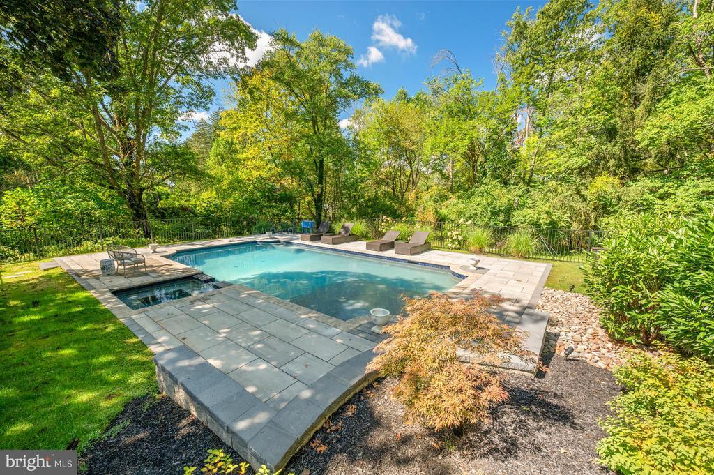 Welcome to this beautifully updated and expanded 5-bedroom, 3.5-bath Colonial set on a private, tree-lined lot. This elegant home boasts timeless curb appeal with crisp white siding, black shutters, a covered portico, and manicured landscaping. Inside, you’ll find spacious, sun-filled rooms designed for both everyday living and entertaining. Step outside to your own backyard oasis, complete with a sparkling pool with spa, charming screened porch, and lush lawn—perfect for summer gatherings and quiet relaxation. The main level offers a seamless flow between the living and dining areas. A fresh updated kitchen features white and blue cabinetry, quartz counters, tiled backsplash and new appliances. The kitchen flows into a large family room with a built-in wetbar and gas fireplace. There is also a formal dining room, a formal living room, an updated powder room, and a large home office on this level. Hardwood floors and updated lighting run throughout. Upstairs, the new Primary Suite is a showstopper. It has hardwood floors, an electric fireplace, a luxurious en-suite bath and 2 walk-in outfitted custom closets. There are 4 additional generously sized bedrooms and two more full hall bathrooms on the second floor. Laundry is also conveniently located on this floor as well. The walk-out lower level is finished, providing additional versatile space. The gorgeous heated pool was installed in 2021 and paver decking was upgraded in 2025. With its combination of style, comfort, and function, this home provides everything you’ve been looking for in a dream property. Located in the highly sought Downingtown Area School District and its award-winning STEM Academy. See List of Improvements in Documents. ROOF 2023; A/C 2023
