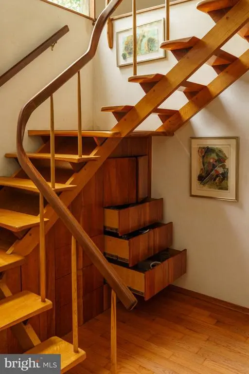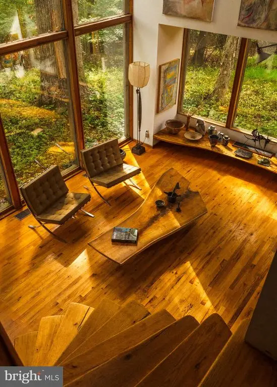 The McElroy House - Set on five private acres in Willistown Township, The McElroy House is an extraordinary contemporary residence designed and built in 1975 by legendary builder Robert McElroy as his own family home. With its wooded backdrop, stream, and rare privacy, the property embodies the qualities McElroy championed throughout his career: architecture that grows from its landscape and invites daily life to flow in rhythm with nature. McElroy, a true pioneer of contemporary design from the late 1950s through the 1970s, crafted homes along the Main Line and atop Valley Forge Mountain known for their dynamic rooflines, expansive floor-to-ceiling glass walls that invite sunlight and views, vaulted ceilings, and exposed beams—all optimized for hillside privacy and harmony with the land. Yet The McElroy House carves its own path with an artistic depth that sets it apart from his broader commissions, inviting you to reimagine daily life amid the trees. While McElroy provided the vision, the soul of the house resides in its extraordinary woodwork by Horace Hartshaw, the esteemed woodworker who apprenticed under and collaborated closely with the iconic Wharton Esherick. Hartshaw designed and built nearly every wooden detail inside the home: the bespoke kitchen cabinetry, multiple staircases—including the sculptural spiral that serves as a functional centerpiece—solid doors with custom handles, stair rails that flow like sculpture, and built-in elements that are both practical and expressive. Each piece was crafted specifically for this home, creating an atmosphere that feels at once natural and highly personal. The home’s atmosphere is one of creativity and sanctuary — equally suited for art-making, gathering, or quiet reflection. Every element, from the fluid millwork to the spatial flow, reflects McElroy’s belief that a house should “interfere with [the environment] as little as possible,” living as one with its site. For those drawn to pedigreed architecture and private natural settings, The McElroy House represents more than a residence. It is a piece of living history — the personal masterpiece of a builder whose work helped shape modern life on the Main Line.
