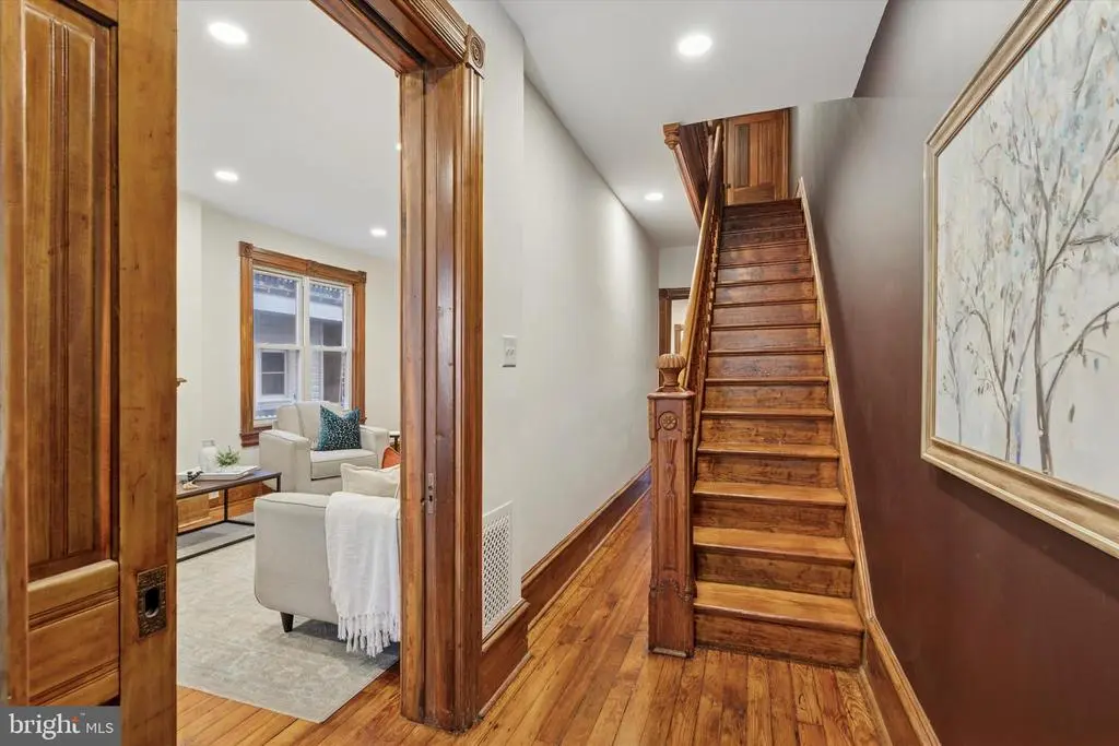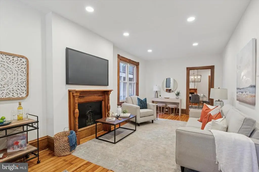 Welcome to 321 Gay St — one of two beautifully preserved twin homes dating back to the 1890s, featuring one-of-a-kind updates and timeless finishes. This stunning property offers over 4,000 square feet of living space with five spacious bedrooms, 2.5 bathrooms, and 10-foot ceilings on every floor. Step inside to find a one-of-a-kind refinished wood pocket door in the living room — a rare architectural gem that showcases the home’s historic character. All of the original wood trim and doors have been meticulously restored and stripped of paint to reveal their natural beauty and rich grain, adding warmth and authenticity throughout. The custom kitchen showcases high-end finishes and premium appliances, complemented by a versatile wet bar just off the kitchen — perfect for hosting gatherings on the new rear deck or transforming into a cozy coffee bar for your morning routine. Both primary bathrooms feature unique, designer tile work, and every system in the home has been fully updated — including new windows, roof, and HVAC. The basement features a complete French drain system for added peace of mind. Additional highlights include brand new retaining walls, a rebuilt front porch, and a new rear deck ideal for entertaining. The property also boasts a new slate roof with copper gutters, and a freshly installed parking pad providing off-street parking for two cars, with additional street parking on quiet surrounding roads. Experience the perfect blend of historic charm and modern luxury at 321 Gay St — a rare find in pristine condition.