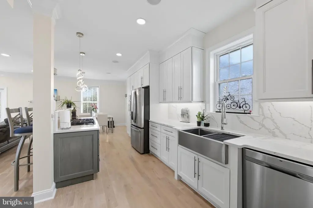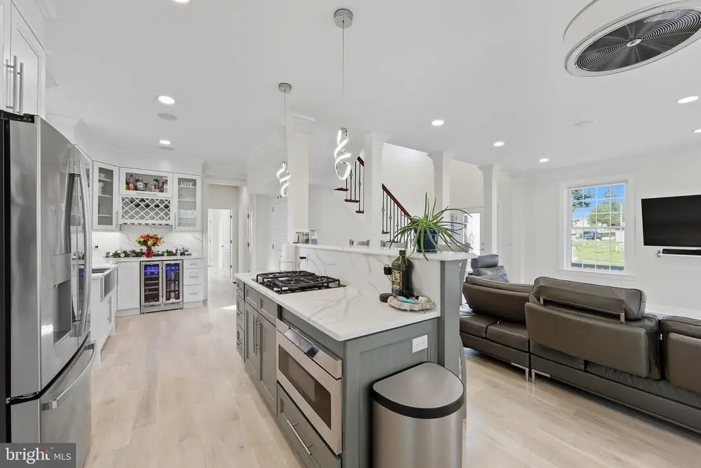 Welcome to this beautifully crafted home, just a 10-minute walk from the heart of vibrant downtown Phoenixville. Blending timeless charm with modern amenities, this residence offers an open-concept layout, upscale finishes, and versatile living spaces designed for today’s lifestyle. A full-length front porch sets the stage for the sunlit interior, where ¾” white oak flooring flows throughout. The open floor plan seamlessly connects the living room—with French doors leading to the yard—to the dining area and a stunning chef’s kitchen. Outfitted with stainless steel appliances, quartz countertops and backsplash, a stainless farm sink, wall oven, center island with gas cooktop, raised bar seating, wine fridge, and built-in wine rack, this kitchen is as functional as it is beautiful. A separate family room provides a quiet retreat, while a powder room completes the first floor. Upstairs, the spacious primary suite offers a custom walk-in closet and a spa-like bath with walk-in shower, soaking tub, and dual quartz vanity with countertop basins. Two additional bedrooms, a hall bath, and a laundry room provide comfort and convenience. The finished basement expands your living options with a granite bar, electric fireplace, and plenty of room for entertaining, fitness, or play. An unfinished section provides valuable storage space. The extra-deep two-car garage is a true bonus, featuring a durable epoxy floor and interior water hose hookup—ideal for hobbyists or extra storage. Located minutes from Providence Town Center and Route 422, with easy access to the Philadelphia Premium Outlets, King of Prussia, and all the dining, shopping, and arts that make Phoenixville such a sought-after destination. This one-of-a-kind home has it all—space, style, and a prime location. Don’t miss it!
