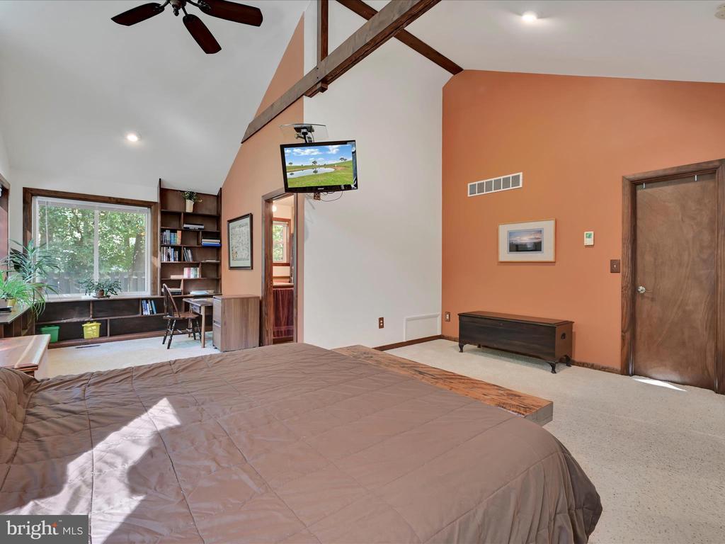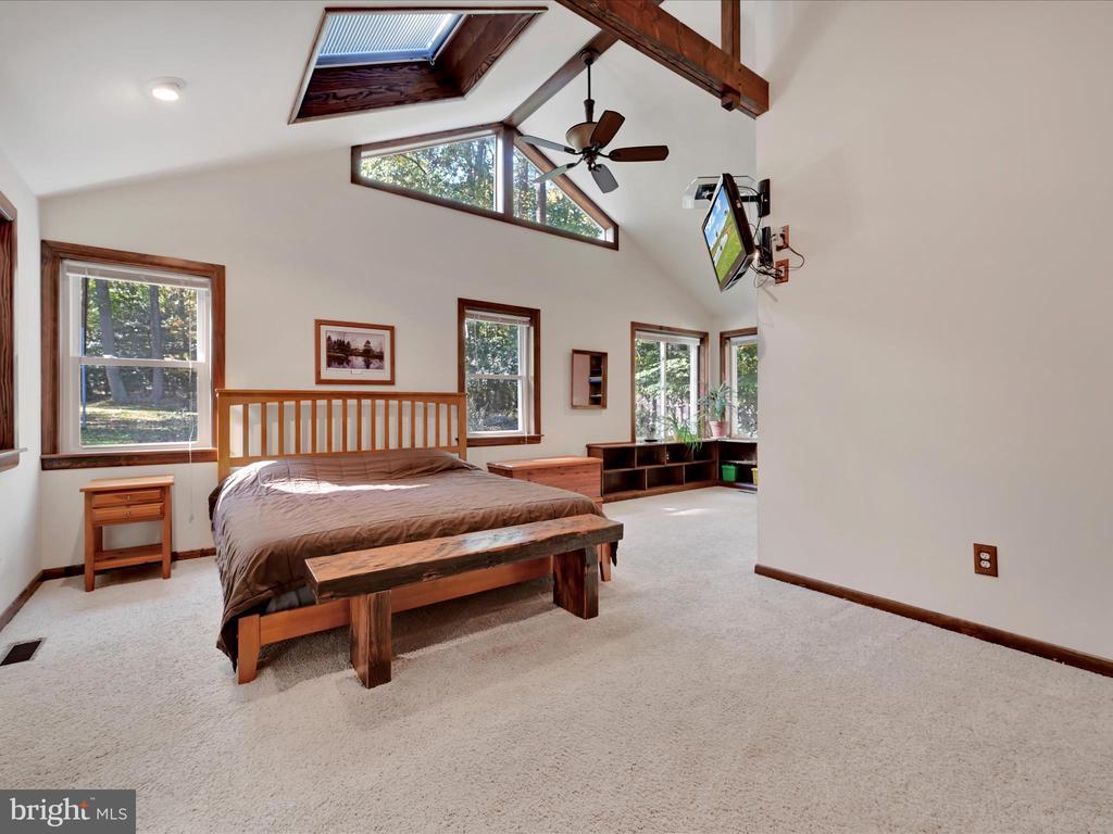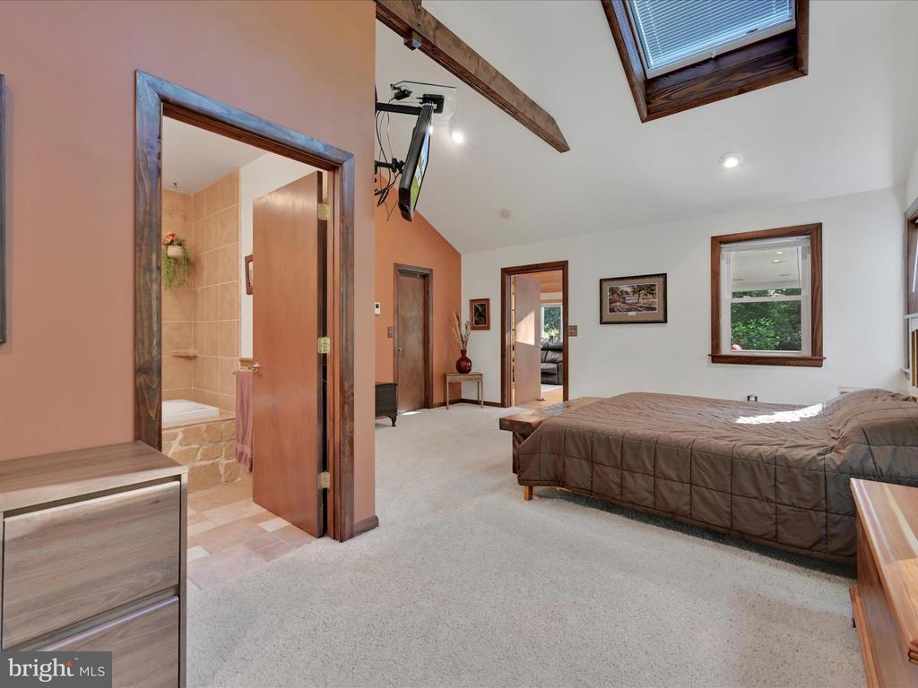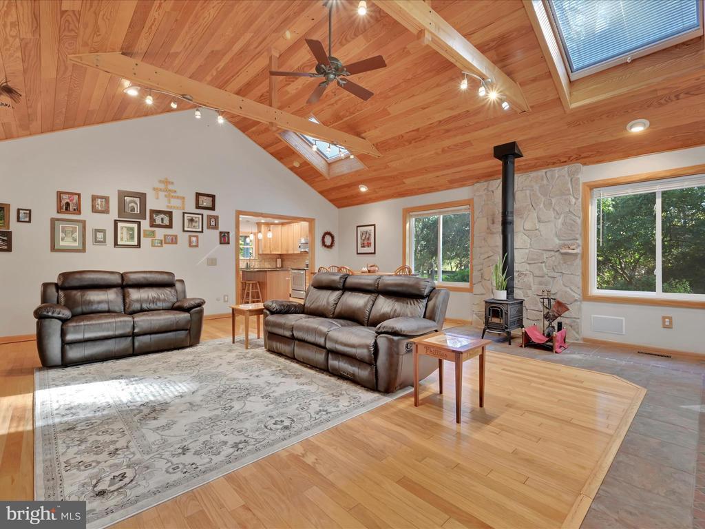 Soaking Tub, Tub Shower, Stall Shower, CeilngFan(s), Entry Lvl BR, Exposed Beams, Pantry, Master Bath(s), Recessed Lighting, Skylight(s), Wd Stove Insrt, Upgraded Countertops, Walk-in Closet(s), Wood Floors