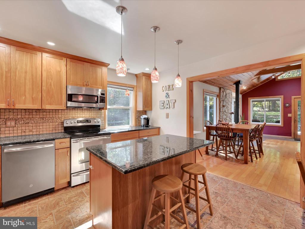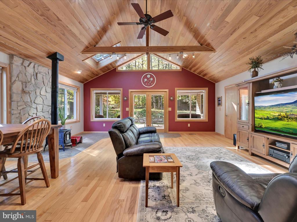 Welcome to 168 Valleyview Drive, a 4-bedroom, 2.5-bath home offering over 2,300 square feet of thoughtfully designed living space. With custom woodwork throughout and not a single detail missed, this property blends timeless craftsmanship with comfortable, modern living. Enjoy the ease of one-floor living with the added bonus of a spacious lower level adding an additional (approximately) 700sf. Complete with a two car garage and a private lot, this home is ready for its new owners to love it just as much as the current owners do! As you make your way into this home prepare to be impressed by the open concept, updated kitchen complete with GE appliances, double sink, solid wood, dovetail cabinets that have a soft close, granite countertops and complete with island seating for three. Just off the kitchen, you’ll find a spacious, versatile room — currently used as the laundry room and walk-in pantry both functional and convenient! The kitchen opens to a spectacular great room featuring a large vaulted ceiling accented by gorgeous, custom wood detailing and views of nature and wildlife in your private backyard through an abundance of windows. You’ll truly feel like you’ve stepped into a Pocono retreat! This room is complete with one (of the two) wood burning stoves which creates a warm and inviting atmosphere filled with beauty and comfort. Off the great room, you’ll find the primary suite which includes custom built-in shelving, more gorgeous, custom wood craftsmanship, a large walk-in closet, and an ensuite bathroom complete with a jacuzzi tub and heated tile flooring. Additionally, you’ll find a generously sized second bedroom that features a gorgeous vaulted sky window encased in custom wood detail — simply stunning, warm and bright. Down the hall you’ll find two additional bedrooms both of great size and a full bathroom updated with a gorgeous vanity and complete with a moonlight! The expansive lower level offers space and comfortable living. This oversized room is complete with the second wood burning stove, wet bar hookup and connects to the two car garage with direct driveway access, making it ideal for busy mornings or snowy days—drop off shoes, bags, and gear right at the door. Step outside and experience the peaceful, property that is surrounded by mature trees and a beautiful, established perennial garden, an enclosed raised garden bed, and a beautifully maintained backyard offering exceptional privacy. Entertain on the gorgeous stone patio and if you wish for a jacuzzi, the exterior water hookup is waiting for you! Located just minutes from suburban conveniences like Target, Giant, Whole Foods and HomeSense, yet tucked away in a serene, nature-filled setting, this home offers the best of both worlds. Schedule your tour today!