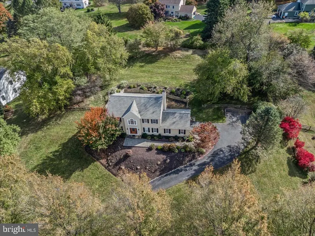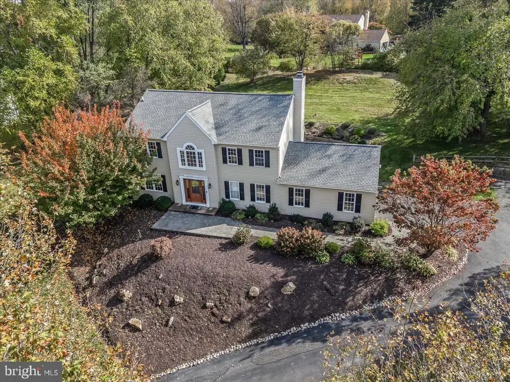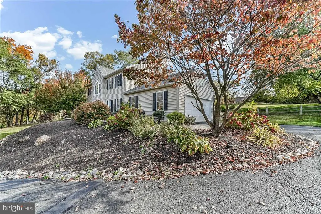 Welcome to this stately and spacious colonial, gracefully perched atop a hill in a charming community of just 28 homes. This home features a beautifully landscaped front yard with stone paver walkway which leads to a stunning stone landing and elegant front door. Step inside to a hardwood foyer and an open floor plan featuring a gourmet kitchen with natural gas cooking, center island with farmhouse sink, and an eat-in area with sliders to the private, paved patio. Enjoy perennial gardens, custom wooden retaining walls and a sloped backyard framed by mature trees - perfect for entertaining or quiet evenings outdoors. The great room boasts a cozy wood-burning stone fireplace, while double French doors connect the formal living and dining rooms, each with hardwood floors and classic chair rail molding. A large mudroom/laundry combo with built-in shelving and an oversized powder room provides everyday convenience off the 2-car garage. Upstairs, the oversized primary suite features a ceiling fan , luxurious ensuite bath with marble and tile finishes, an extra-large walk-in shower with three rain shower heads and handheld wand. Three additional generously sized bedrooms share a well-appointed hall full bath. The fully finished lower level offers incredible versatility - featuring a fifth bedroom with egress, full walk-in shower, a Jack and Jill style half bath, plus space for a family room, recreation room, home office, hobby area. With a one-year old roof, mature landscaping, ample storage, and so many flexible spaces throughout, this home offers exceptional value and endless potential.