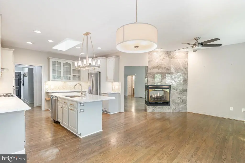 Welcome to this beautiful ranch home nestled on a .61-acre lot in the desirable Mountaindale community! Step inside to find an inviting foyer that welcomes you into the main space of the home with wonderful features throughout. The formal dining room is complete with hardwood floors, crown molding, and chair rail. The open living room features soaring 12-foot ceilings, hardwood floors, skylights, expansive windows that flood the space with natural light, and a double-sided gas fireplace that flows seamlessly into the kitchen area. The kitchen is a chef’s dream with quartz countertops, tile backsplash, center island, skylight, eat-in dining area, and sitting space with outdoor access. Private office with hardwood floors, and custom built-ins/desk. The main-level primary suite offers deck access, hardwood floors, tray ceiling, walk-in closet, ceiling fan, and a luxurious bath with double vanity, walk-in shower, and soaking tub. An additional bedroom is also found on the main level. The finished walkout basement with 9-foot ceilings provides the perfect setup for guests or in-law quarters, featuring its own kitchen, family room with gas fireplace, two additional bedrooms, full bath, and laundry hookups. Basement also includes over 1,150 sf of unfinished space for storage. Outdoor living is at its finest with two decks overlooking beautiful wooded views, offering a true “living among the treetops” experience. Two car garage and spacious driveway. Convenient access to shopping, dining and entertainment. A joy to own!