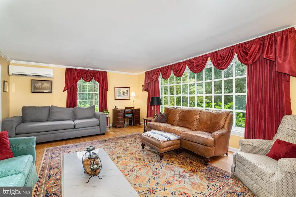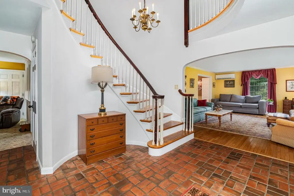 Nestled on the mountainside and surrounded by trees and native wildlife, this sprawling Colonial two-story home offers the perfect blend of peaceful seclusion and spacious comfort. With over 4,500 square feet of thoughtfully designed living space, this retreat features 4–5 bedrooms and 4 full bathrooms—ideal for multi-generational living or hosting guests. A grand two-story foyer with a turned staircase welcomes you inside, setting the tone for the home's warm and elegant character. To one side, a bright and expansive living room showcases rich oak hardwood floors and an abundance of windows, offering panoramic views of the wooded surroundings. Opposite the foyer, a private study or optional main-level bedroom includes custom built-ins and is conveniently located next to a full bathroom—perfect for guests or flexible use. At the heart of the home, a French country-inspired kitchen features crisp white cabinetry, wood countertops, charming tile backsplash, brick accent walls, and a spacious breakfast area. The kitchen flows seamlessly into an intimate family room with a cozy wood-burning fireplace, creating the perfect gathering space. For more formal occasions, the elegant dining room is appointed with crown molding, chair rail, and hardwood flooring. Upstairs, you'll find four generously sized bedrooms and three full baths. The primary suite is a true retreat with its own gas fireplace and a private ensuite bath. A second bedroom also enjoys an ensuite bath, while two additional bedrooms share a well-appointed hall bath. A finished bonus room on this level provides ideal space for storage, a hobby room, or future second-floor laundry. The finished lower level offers additional living or recreational space, adaptable to your needs. Step outside to a serene paver patio featuring yet another wood-burning fireplace—an inviting spot to relax and take in the sights and sounds of nature year-round. If you're seeking a one-of-a-kind mountain retreat with timeless charm and room to grow, look no further.
