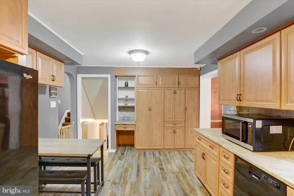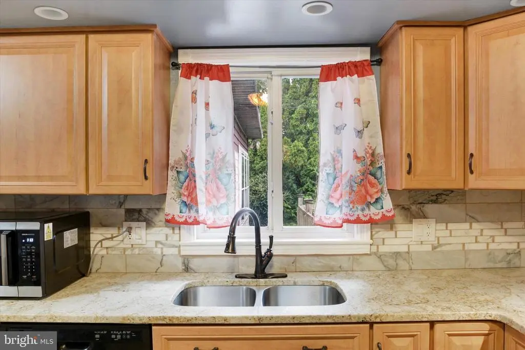 Spacious and versatile 4-bedroom, 3-bath split-level home offering flexible living across four levels. The main level features a spacious primary bedroom with a walk-in closet and full bath, a large dining room that flows seamlessly into a sunroom, and a beautifully updated kitchen with laminate flooring, granite countertops, custom backsplash, recessed lighting, and abundant cabinetry. The living and dining rooms boast new vinyl plank flooring, enhancing both style and durability. Upper level offers 3 generously sized bedrooms and a remodeled full bath. Lower levels include a family room with wood-burning fireplace, full bath, and two flex rooms perfect for an office, playroom, or guest space—one with a cedar closet. Enjoy outdoor living with a private side yard and relaxing courtyard. 2-car garage and ample storage throughout. A must-see home with room for everyone! A joy to show!