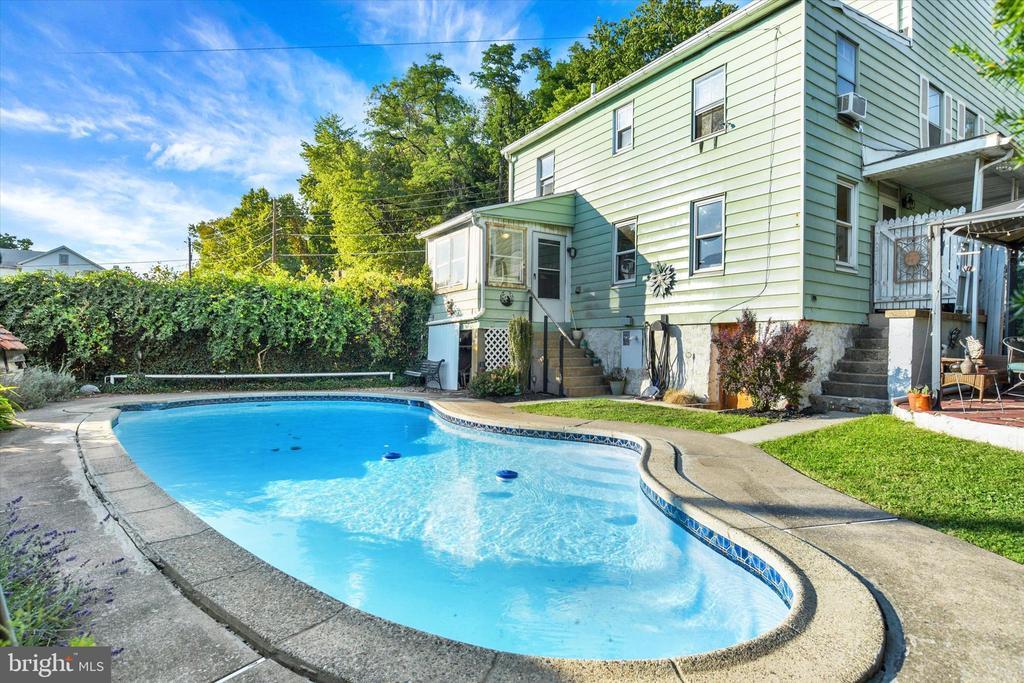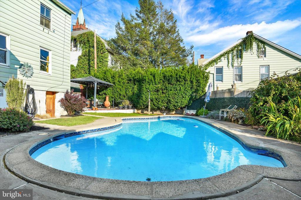 Step into history with this beautifully preserved and thoughtfully updated 1870 Steelton gem, built at the dawn of the Gilded Age. Just minutes from downtown Harrisburg, this unique property blends timeless character with modern convenience. Enjoy off-street parking with a 2-car driveway, a separate garage (alley access), and an additional backyard parking pad. The stunning wraparound front and side porch invites you to relax and take in the charm of this historic neighborhood. The private, fenced-in backyard is an entertainer's dream, featuring a 3.5–10 ft deep in-ground pool with a new aluminum solar cover reel, a raised patio with a newer gazebo/canopy and chimenea, a built-in stone wall bench, and a native perennial flower garden framed by mature honeysuckle-covered fencing. A rare highlight is the hand-built, wood-fired clay bread oven, perfect for rustic outdoor cooking. There's even walkout basement access to the backyard for easy entertaining flow. Inside, this home offers rich character and functional updates: a spacious living room, formal dining room, and library with custom-built bookshelves. The updated galley kitchen includes a double sink, bar sink, and bar counter for added convenience. A newly added first-floor powder room adds modern practicality, while the laundry/mudroom on the back porch provides direct access to the pool and yard. Essential upgrades include a tankless water heater, new water and sewer lines for peace of mind. A joy to own!