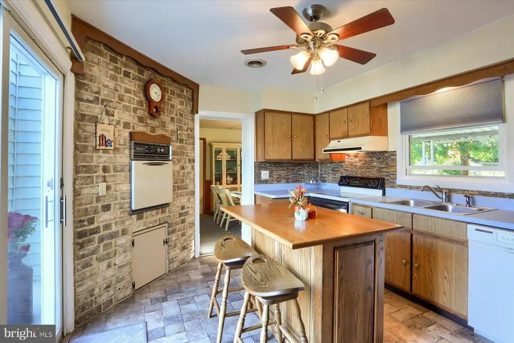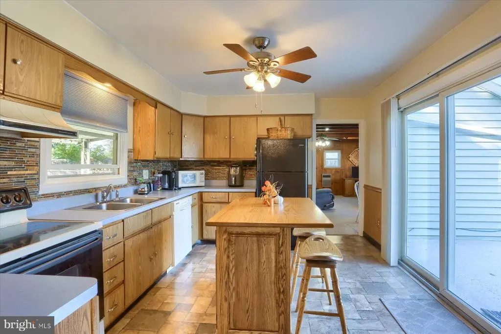 Welcome to this cozy 2-bedroom, 1-bath home offering charm, comfort, and convenience with 1,374 sf! Ideally located near shopping and major highways, this well-maintained home greets you with a spacious outdoor seating area and a covered front porch. Step inside to an inviting living room featuring brick accents and a beautiful bay window. The adjoining dining area leads to a nostalgic kitchen with both an electric range and second wall oven (just in time for holiday cooking), an island, pass-through window to rear covered patio, and sliding glass doors opening to the front patio. Just beyond the kitchen, you'll find a warm and versatile family room—ideal as a game room, guest space, or even a 3rd bedroom. This special room includes a propane stove, two built-in twin Murphy beds, large storage closet, and direct access to a flat, fenced backyard. Recent updates include luxury vinyl plank (LVP) flooring and stylish shiplap walls in the second bedroom, a new sewer line to the street, and new water heater (2024). The laundry room offers extra storage and has its own exterior entrance for added convenience. Additional storage in attic. Two sheds with electricity stay with the home, providing excellent workspace or storage options. This lovingly cared-for home is ready to welcome its next owners—don’t miss your opportunity to make it yours!