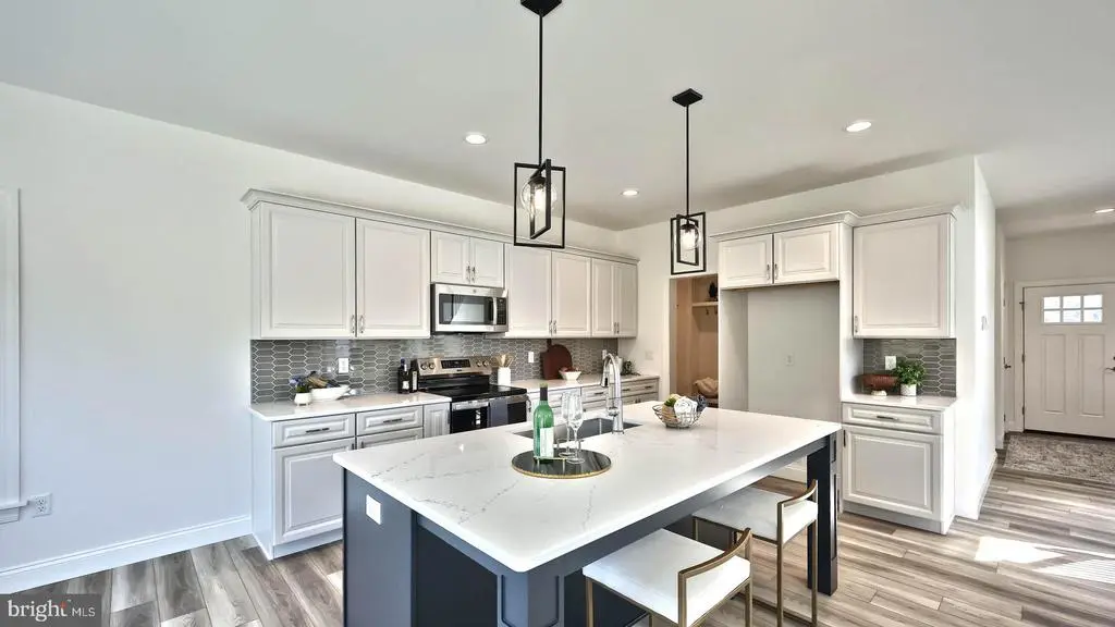 This beautiful home with a welcoming front porch includes a 2-car garage with a large mudroom entry with built-in lockers. The first floor boasts 9’ ceilings and stylish vinyl plank flooring in the main living areas. To the front of the home is a first-floor guest bedroom which could optionally serve as a study, living room, or other versatile space. The kitchen is well-appointed with quartz countertops, stainless-steel appliances, tile backsplash and a large pantry. The sunny dining area provides access to the backyard patio. Open to the kitchen, the comfortable family room is warmed by a gas fireplace with a stone surround. The 2nd floor owner’s suite features an expansive closet and a private bathroom with a 5’ shower and double bowl vanity. Adjacent to the suite there are 3 additional bedrooms, a full bathroom, a spacious open rec room, and a convenient laundry room.