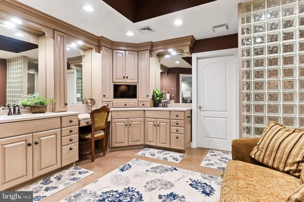 Additional Stairway, Bar, Bathroom - Stall Shower, Bathroom - Tub Shower, Built-Ins, Carpet, Ceiling Fan(s), Formal/Separate Dining Room, Pantry, Primary Bath(s), Recessed Lighting, Store/Office, Upgraded Countertops, Walk-in Closet(s), Window Treatments, Wood Floors