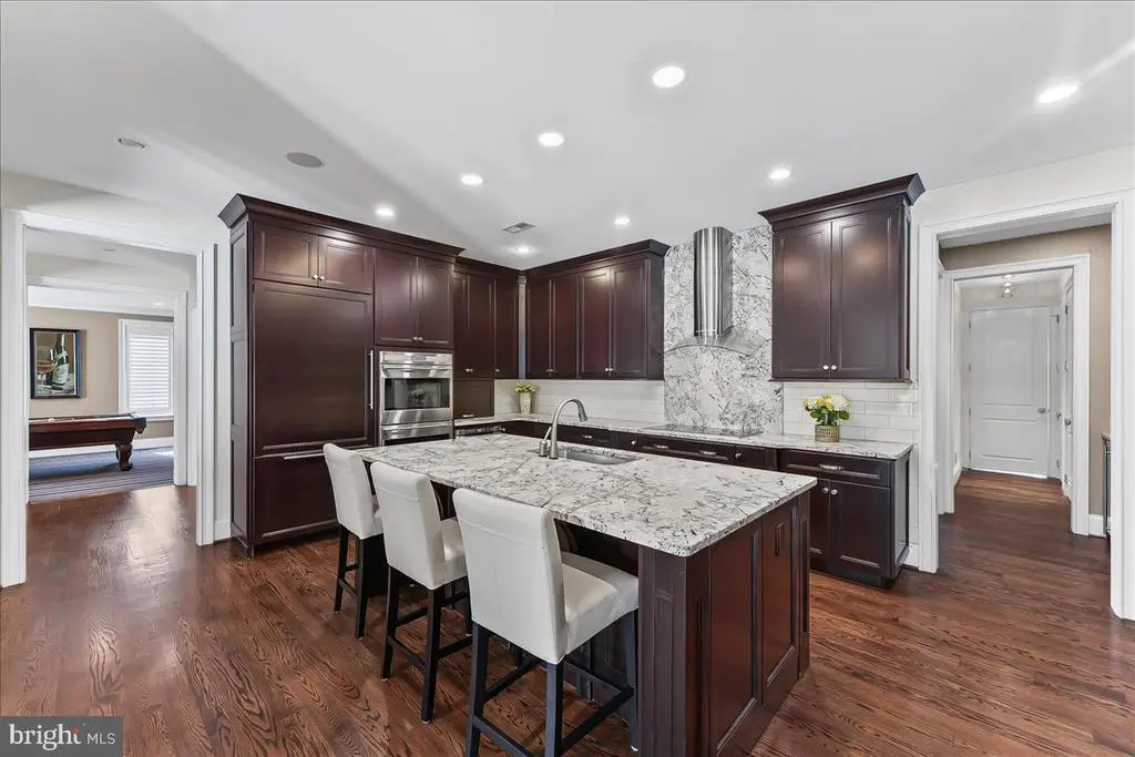 One of the premier properties in the Haverford Reserve community! This stunning “Pembrey” model has exceptional indoor and outdoor spaces. You will appreciate the thoughtful upgrades and design choices throughout. The home can expand and contract for day-to-day living and when you have your favorite visiting family and friends. With a premium lot backing to the wooded Reserve, the two-tiered entertaining spaces, topped off by an Ipe wood deck and pergola, will be an area where you will make many memories. The Main Level’s center is the beamed Great Room with a built-in entertainment center, a manteled fireplace and streaming sunlight. There is, also, a formal Living Room with a transomed entrance and custom milled fireplace surround; a large Home Office (currently being used as a Billiards Room), and a Breakfast Room leading out to the deck. There is a lovely Powder Room and a well-outfitted Mud Room leading out to the spacious two car Garage. The main level and upstairs hall are outfitted with wide-plank, site finished hardwood floors, and plantation shutters grace the windows throughout the home. The whole house Sonos music system sets the mood for your day. The unique Kitchen has rich cabinetry and display cabinets for your collectables. The appliances include Wolf double ovens, a Wolf induction cooktop, built-in microwave, and Miele dishwasher and refrigerator. Leathered granite surfaces complement the tone of the kitchen. Adjacent to the Kitchen is a Butler’s Pantry with a wet bar, a mini-refrigerator and stylish storage connecting the formal Dining room. Take the elevator or sweeping staircase up to the second floor and you will find an elegant Main Suite with upgraded millwork, custom his and her closets and a vaulted ceiling main Bathroom. Finally, there are two additional Bedrooms each with a private ensuite Bathroom and a spacious Laundry Room. The walkout Lower Level is a multi-functional floor. The main area has a media space for listening to music and watching TV, a sitting area for games and conversation and a working office with a wet bar and refrigerator. This level has a beautiful full Bathroom and two rooms that are currently used as Bedrooms. The Bedrooms can easily be converted to dedicated exercise space if desired. The Haverford Reserve is set among 120 acres of parkland with walking trails; there is a Community Recreation Center; playing fields and a dog park. The location is just minutes from the Septa train and a short drive to Center City and the Philadelphia International Airport.