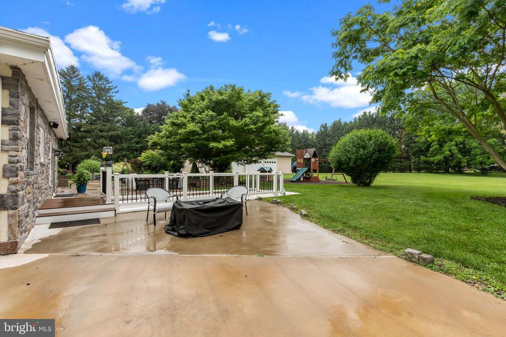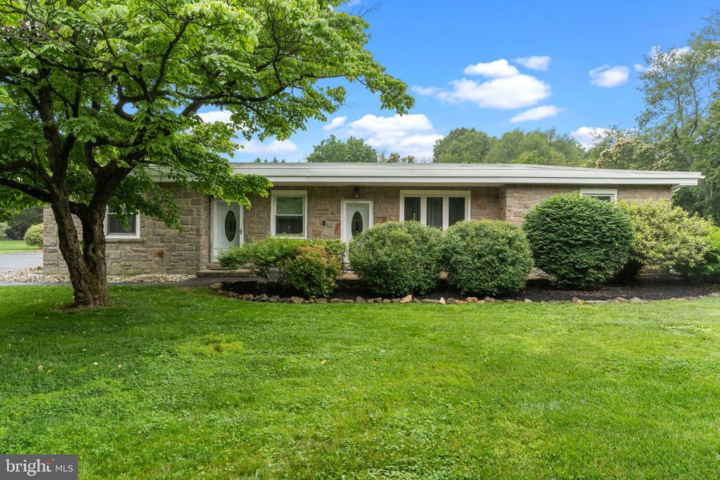 Welcome to this beautifully updated 5-bedroom, 3 full bath ranch style home, in the desirable Garnet Valley School District, where comfort, charm, and functionality come together in perfect harmony. From the moment you arrive, you’ll appreciate the classic curb appeal, with a low-maintenance exterior of stone and stucco that offers both durability and timeless style. Step inside to discover a well-maintained, thoughtfully updated interior filled with natural light and elegant details. Flooring on the main level as well as the basement has been updated in Oct. 2025. The main kitchen is a chef’s dream, featuring a large center island, double ovens that include a multi-function microwave, and split oven, recessed and pendant lighting, and a convenient wet bar complete with a wine fridge and ice machine—ideal for entertaining or everyday enjoyment. Just off the kitchen, the all-season sunroom offers year-round relaxation with its own mini split and ceiling fan, providing a perfect spot to unwind while overlooking the lush, tree-lined 2-acre backyard. The spacious primary bedroom suite includes a walk-in closet, a recently updated spa-inspired bath with white subway tile, an accent wall tiled shower enclosed in glass, a double vanity with granite countertops that are all designed for functionality and relaxation. On the opposite side of the house joined by a family room, there are three bedrooms (or two bedrooms and an office) with a large upgraded bathroom featuring a glass enclosed shower, freestanding soaking tub, dual vanities topped with sparkling granite countertops, rich smokey gray glass subway tile, and soft blue walls that create a peaceful retreat. Downstairs, the full, partially finished basement expands your living options even further with a full size living room, a large bedroom and full bathroom and tons of storage. There is also a second kitchen area ready for your appliances, with kitchen cabinets, a sink and an island with butcher block countertops for durability. With its rustic loft feel and double doors that lead up to the backyard this space is ideal for guests, extended family, or recreation. Step outside to a backyard made for entertaining and play. The expansive patio features a built-in brick wall, a cozy fire pit, and a charming pergola. A bridge over the basement steps leads to the kitchen side of the house and another concrete patio. A dedicated play area with a rubber mulch bed and neat edging ensures fun for the whole family, while the mature trees, beautiful gardens and meticulous landscaping provide beauty, privacy, and tranquility. Car lovers and hobbyists will love the 40 x 60 Pole barn with 3 overhead doors, a side entry door, electricity and a loft with full sized stair access for additional storage. A separate one-car detached garage adds even more versatility. With two long driveways—one on each side of the property—you’ll never run out of parking for guests, RVs, or gatherings. This home truly has it all—stylish updates, generous space, and incredible outdoor living. Don’t miss the opportunity to make it yours!