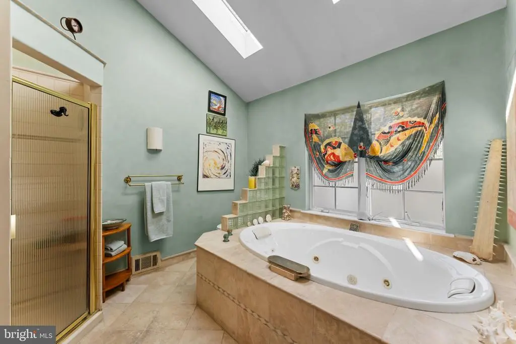 Attic, Bathroom - Jetted Tub, Bathroom - Soaking Tub, Bathroom - Stall Shower, Bathroom - Tub Shower, Bathroom - Walk-In Shower, Built-Ins, Carpet, Ceiling Fan(s), Entry Level Bedroom, Formal/Separate Dining Room, Pantry, Primary Bath(s), Recessed Lighting, Skylight(s), Walk-in Closet(s), Wood Floors