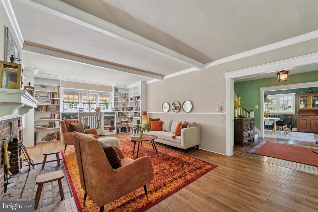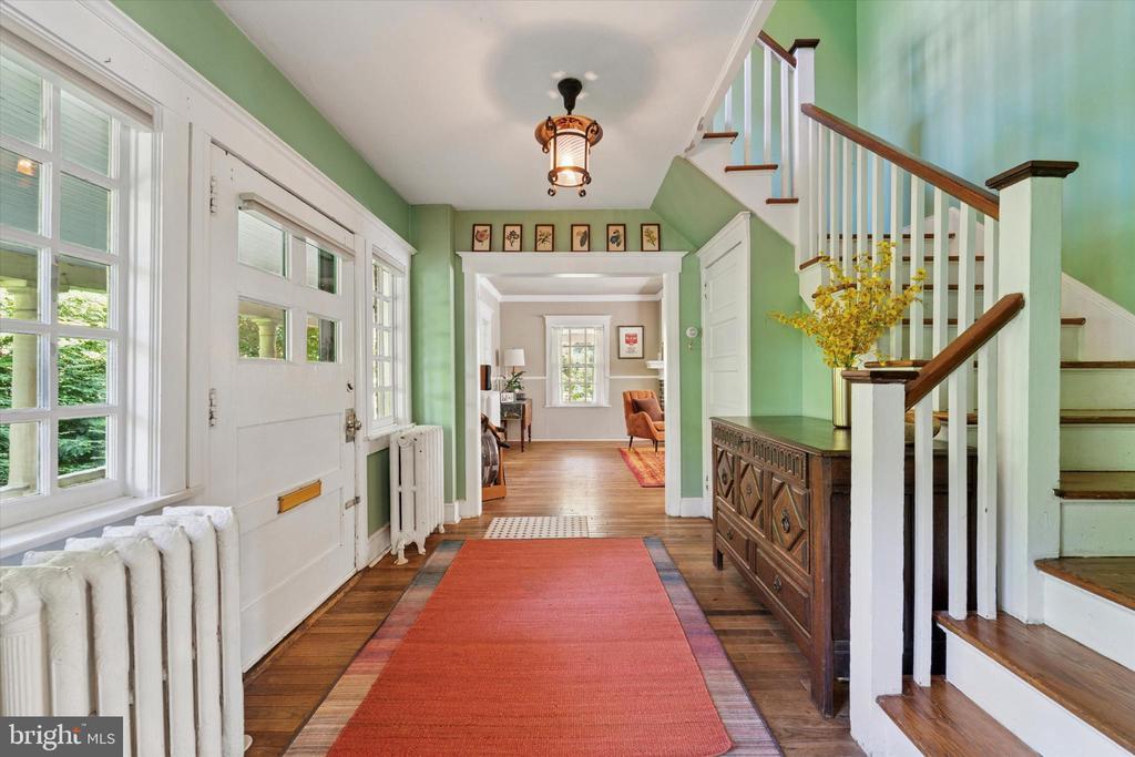 Welcome to 132 Rutgers Avenue, a 5 bedroom, 2.5 bath home, nestled in the heart of Swarthmore that is sure to enchant with a charming aesthetic that honors its age and architectural beauty. Step past the classic brick exterior and onto the inviting wrap-around porch - a perfect spot to enjoy your morning coffee while surrounded by beautiful gardens curated with native plants to attract birds and butterflies. Once inside, notice the gorgeous hardwood floors, crown molding, lovely woodworking details, and a center staircase with sightlines from the first to third floors. The large and warm living room is filled with windows and complete with a working fireplace, built-in bookshelves, and exposed beams. Follow the hardwood floors to the stylish dining room. The eat-in kitchen with maple hardwood floors offers direct access to the backyard, great for grilling or garden gatherings. The fully-fenced yard is home to mature landscaping and has a magical feel with wildflowers, apple trees, elderberries, and more. The second floor is home to three bedrooms including a large primary with an en-suite bathroom. Two additional bedrooms sit on the other side of the landing with a convenient hall bathroom. The third floor provides two additional bedrooms - one with arched windows and the other with built-in bookshelves. Depending on your needs they could also be used as any combination of bedroom, den, lounge, playroom, or office. The unfinished basement has been waterproofed and provides storage and a laundry area as well as an exit to the yard. The driveway can comfortably fit two cars. This location could not be better!! You'll enjoy a quick walk to downtown Swarthmore and everything the town has to offer - the train to Philadelphia, local shops, restaurants, playgrounds, the Co-op market, and the picturesque arboretum at Swarthmore College. You'll also love the proximity to the library, community center and farmer's market.