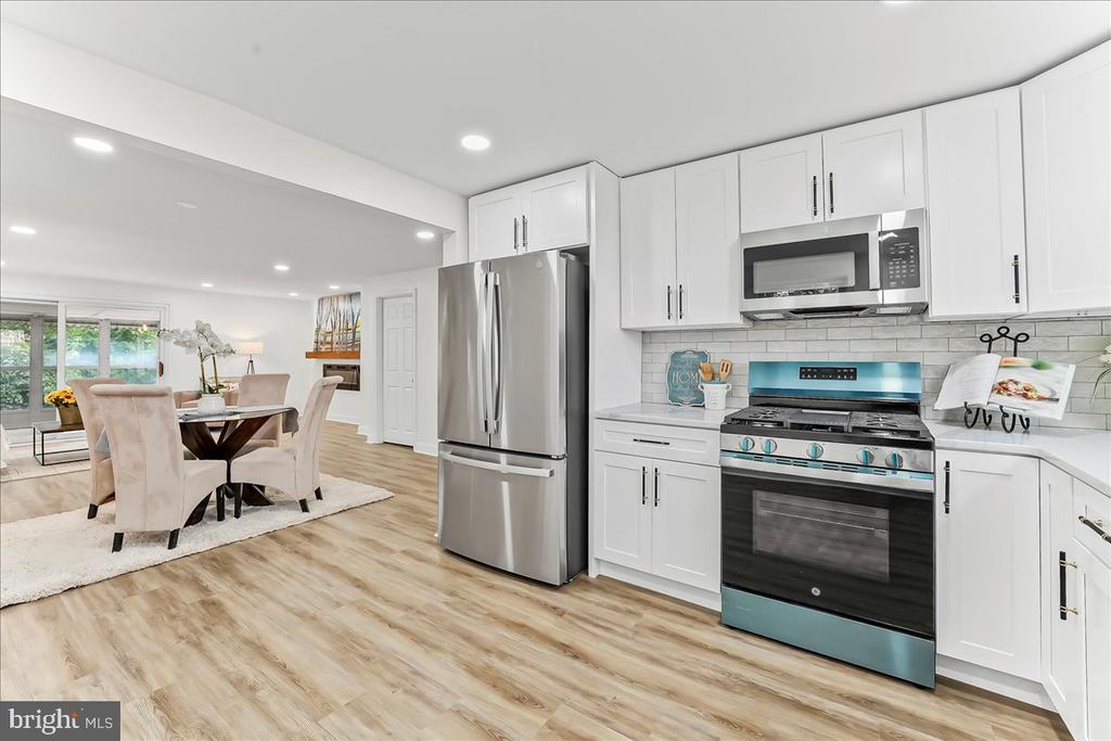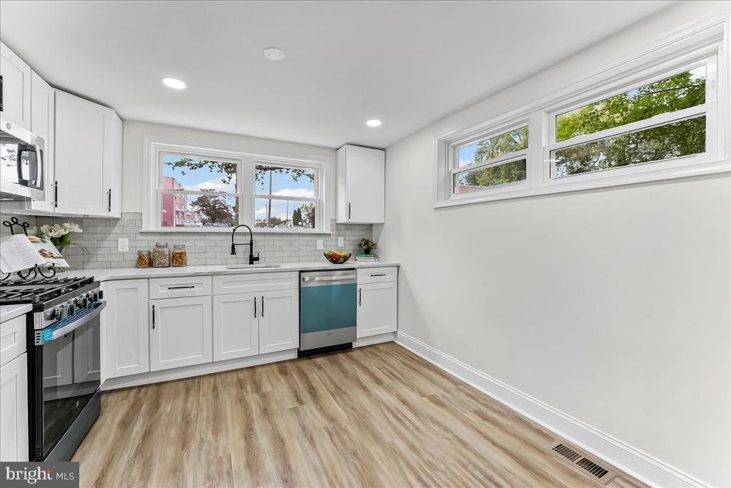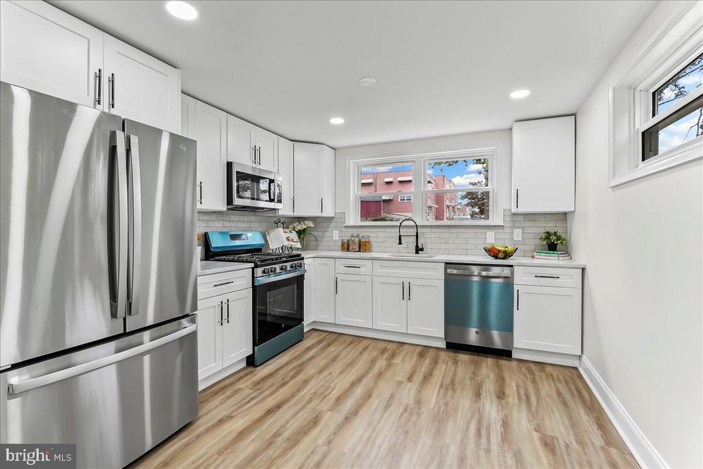 Bright and spacious end row with large fenced yard! This wonderfully renovated home will check all the boxes! Features include new kitchen, two new baths, new doors and windows, finished basement, sun room, large storage shed, new vinyl flooring, central air, new deck, new appliances, and electric fireplace. Just move right in and enjoy!