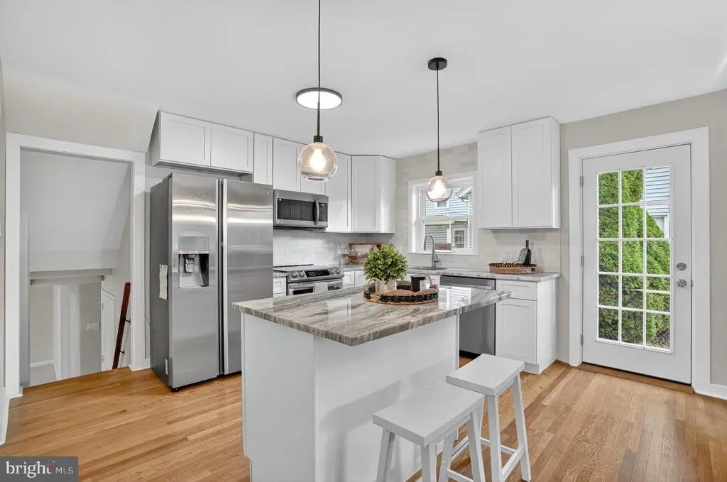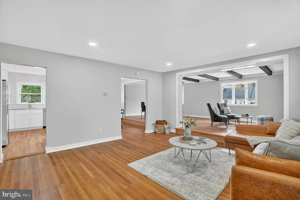 Totally renovated and expanded, this stunning home is located in the highly desirable section of Havertown, within walking distance to several parks and the Llanerch Country Club. Situated on a charming, quiet street with easy access to shops, restaurants, schools, and activities, this home offers both convenience and community appeal. The main level features a spacious great room with exposed stone, brick, and wood beams, highlighted by a cozy gas fireplace, perfect for relaxing or entertaining. The brand-new custom kitchen boasts white shaker-style cabinetry, granite countertops, a central island with seating, and stainless steel appliances, while an additional large living space provides endless possibilities—use it as a formal dining room, family room, playroom, or more. Upstairs, there are three generously sized bedrooms and a fully renovated hall bath with tub/shower combo and tile surround. A few more steps to the 3rd story to find a very bright and large 4th bedroom/office/playroom that has a TON of storage space. The finished lower level offers a massive living area, full bath with tiled shower, HUGE laundry room that could double as an office/workspace/mudroom, and separate entrance to the back yard, making it ideal as an in-law suite, home office or family room, with seamless access to the backyard—perfect for entertaining or enjoying a game day BBQ. Other updates include a new roof, new hot water heater, new plumbing, new electrical, new flooring throughout, new kitchen, new baths, and a freshly seal-coated driveway. Located in the award-winning Haverford School District, this home combines modern upgrades with classic charm in a prime location.