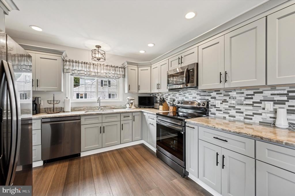 Welcome to this charming and super impressive 3-bedroom, 2-full bath home in the desirable Swarthmore section of Ridley Township. As soon as you step inside you will see a bright and inviting living room with a cozy wood-burning fireplace and beautiful floors. The first floor offers two comfortable bedrooms and a newer full bath along with a stunning new kitchen with abundant quality cabinetry and designed with both style and function in mind. Off the kitchen is very relaxing sunroom with sliders that opens to a spacious deck which overlooks a magnificent fenced in backyard complete with an oversized shed and a gazebo perfect for entertaining or relaxing. Make your way to the second floor where you will find a master suite with its own full bath, creating a peaceful retreat. There also is a full basement which provides excellent storage, utility room, and a workshop area. Other great features include, an extra long driveway which can easily accommodates 4+ cars, some newer windows, newer deck, Electric tankless hot water heater, Fujistu VRF heat pump installed in 2021! The home is set on a quiet, beautiful street in a desirable neighborhood. What more can you ask for, this home has it all space, updates, and an outdoor setting to enjoy year around! Schedule your showing and be the first to own this beautiful home!