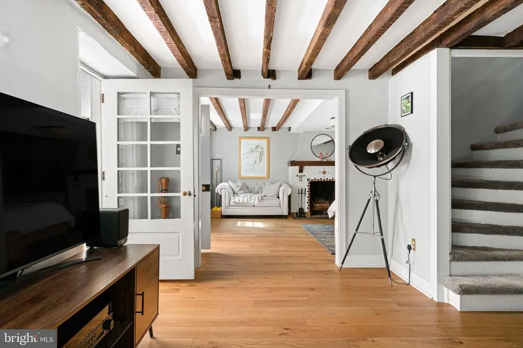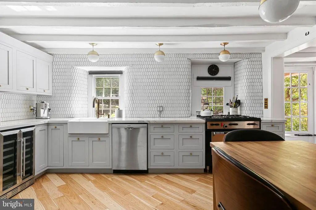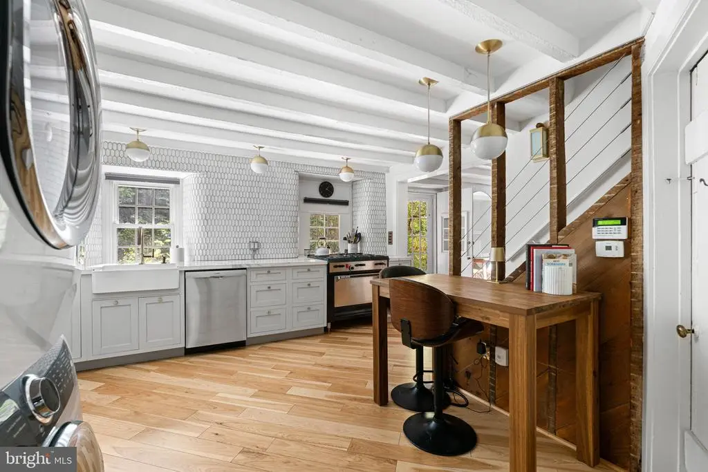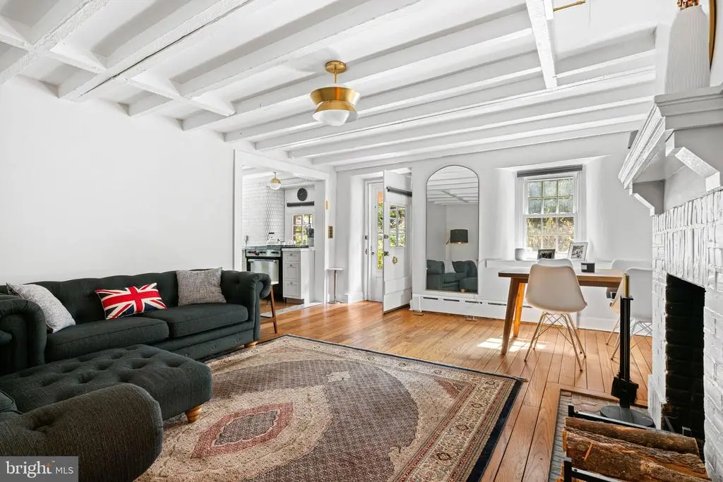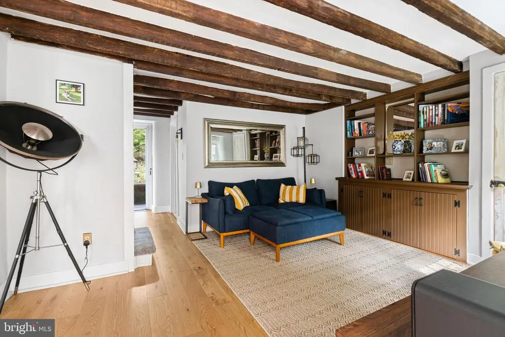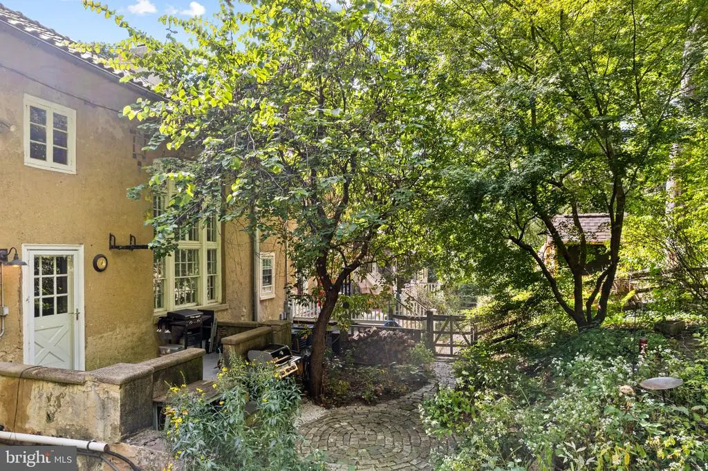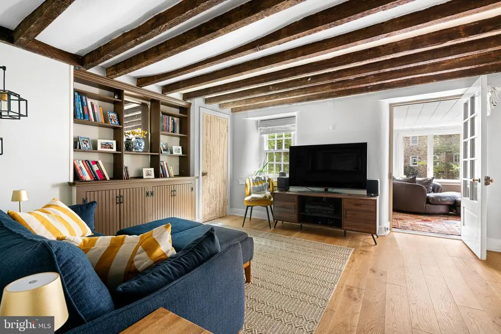 Historic Rose Valley Borough Twin Home with Timeless Character and Modern Comforts - This 3-bedroom, 3-bath home spans over 2112 square feet Situated in the historic core of the desirable Rose Valley borough, this attached home offers both old-world character in addition to beautifully and sustainably renewed living spaces. Maintaining the cozy European Lodge feel, this home has been tastefully renovated in the spirit of the Arts & Crafts philosophy, with a hint of Quaker simplicity, as well as a more modern design aesthetic in the bathrooms and kitchen to appeal to today’s discerning homebuyer. Originally constructed in the mid 1800’s as tenement housing for workers of the nearby mill, in 1901, William Price - architect and Rose Valley’s founder, renovated the complex into three single family dwellings. This “Guest House” provided lodging for traveling artists during the early part of the 20th century at a time when Rose Valley was ensconced in the Arts & Crafts movement. This home boasts exposed wood beams, 21” thick stone walls, beautifully curved window casings, fluted Italian tiles, hardwood floors, and Mercer tile fireplaces. The main floor layout has a combined lounge and dining area open to the Kitchen, as well as offering a convenient Powder Room, Utility Room, and provides easy access to a back patio and garden. The kitchen features Amish-made shaker inset cabinetry, porcelain countertops, farm sink with brass gooseneck faucet, integrated wine fridge, bistro lighting, hickory floors with radiant heat, a generous adjustable pantry, and a modern laundry area set by exposed brick as well as energy efficient windows throughout. On the second floor, you’ll find a Living Room featuring built-in bookcases; a Sun Porch with reclaimed French Terra Cotta tile and radiant heat; the spacious Main Bedroom with fireplace; and an updated bathroom with large trough sink and a claw foot tub with subway tile. Both lounge and bedroom have new (2023) solid natural oak wide plank flooring throughout and this level offers second floor access to a patio space and the garden. The third floor boasts a beautifully designed bathroom with double sinks, a Carrara marble double shower; an office overlooking the rear garden through its north-facing cathedral window; two other bedrooms which both lead to a Sun Deck/Balcony, from which you can survey the borough’s green space across the street. Award-winning Wallingford-Swarthmore School District, conveniently close to Media, Swarthmore, and the SEPTA station, with easy access to Philadelphia and the airport.