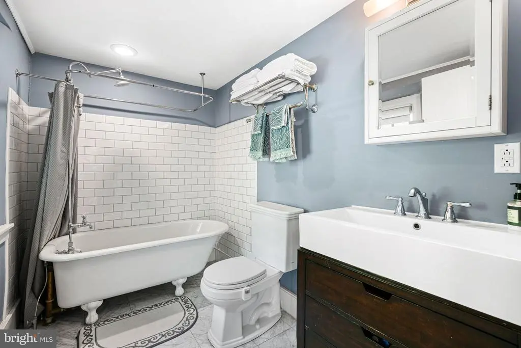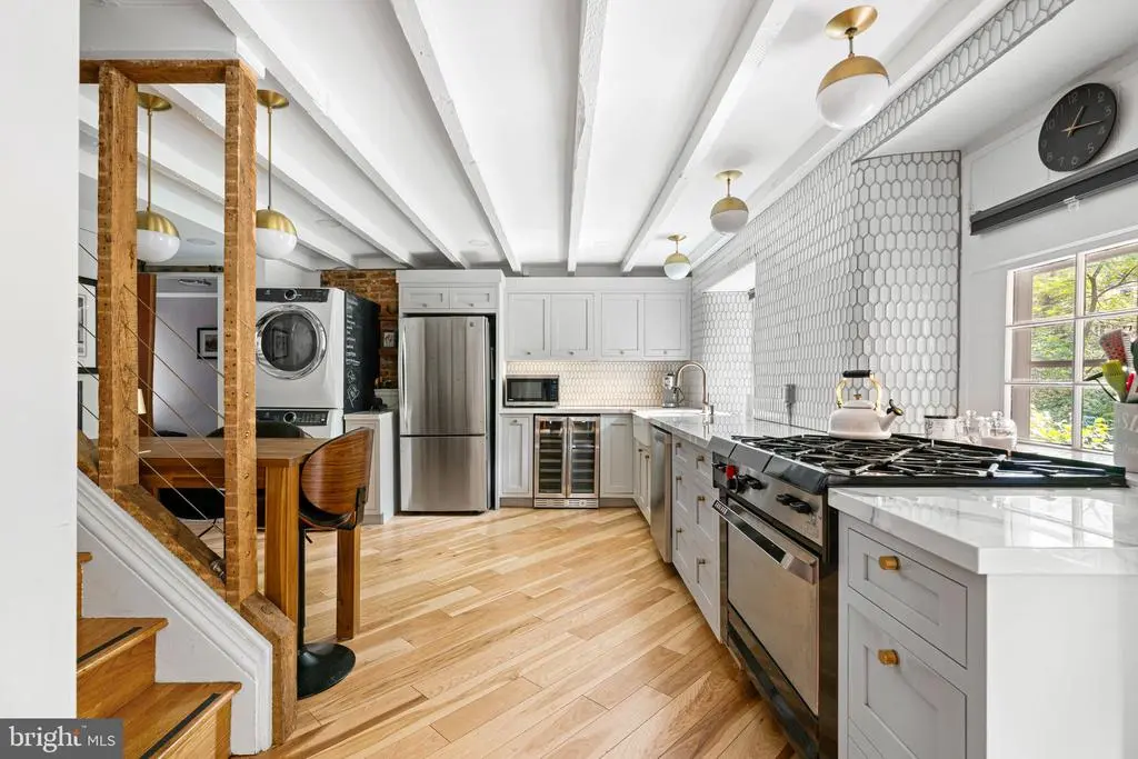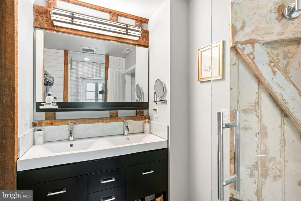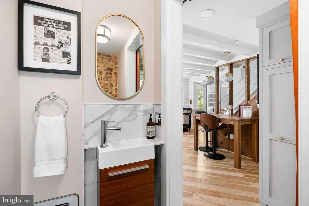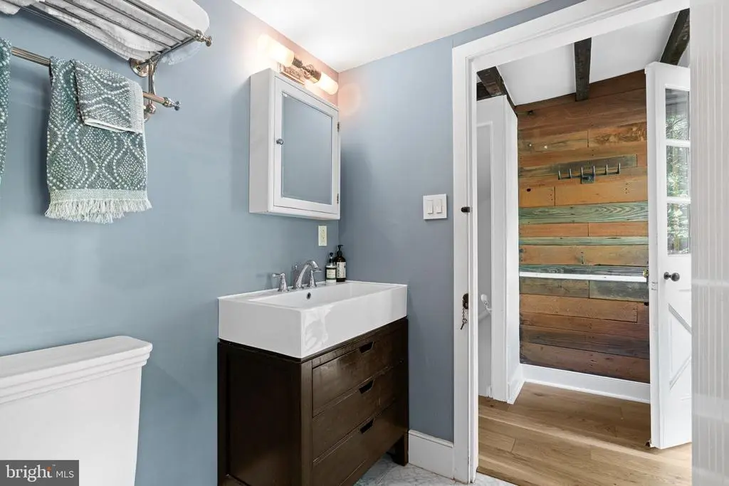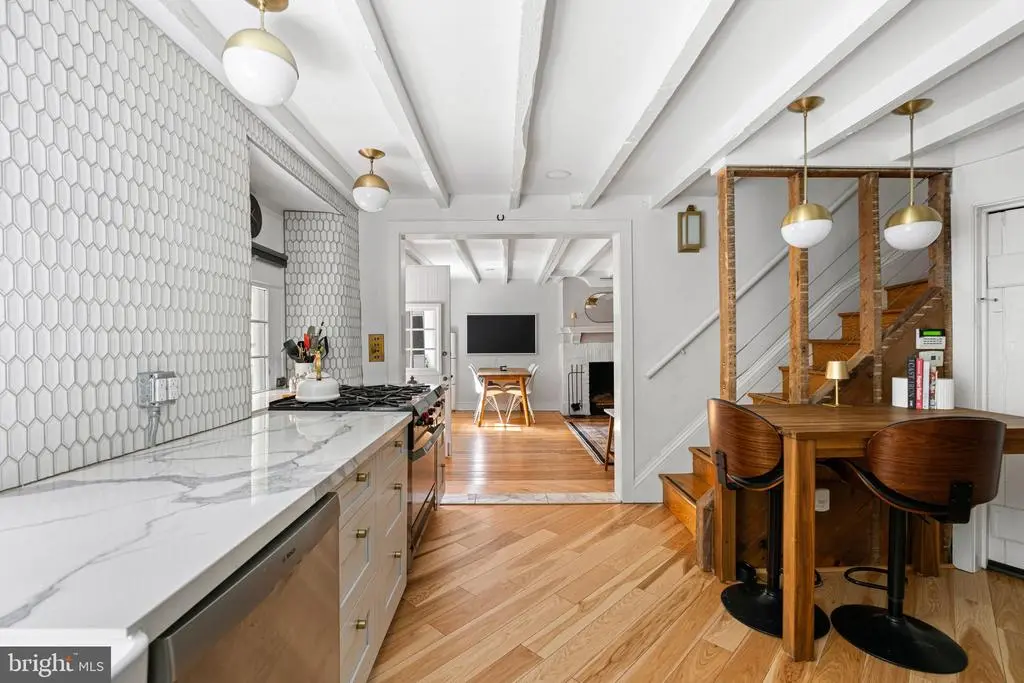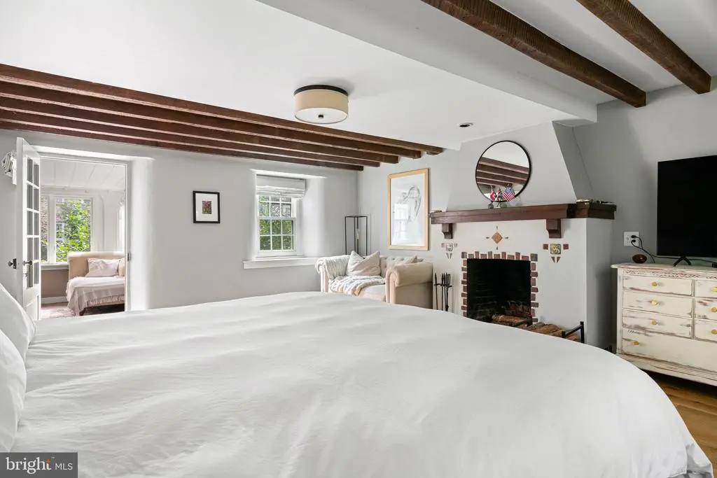 Historic Rose Valley Borough Twin Home with Timeless Character and Modern Comforts - This 3-bedroom, 3-bath home spans over 2112 square feet Situated in the historic core of the desirable Rose Valley borough, this attached home offers both old-world character in addition to beautifully and sustainably renewed living spaces. Maintaining the cozy European Lodge feel, this home has been tastefully renovated in the spirit of the Arts & Crafts philosophy, with a hint of Quaker simplicity, as well as a more modern design aesthetic in the bathrooms and kitchen to appeal to today’s discerning homebuyer. Originally constructed in the mid 1800’s as tenement housing for workers of the nearby mill, in 1901, William Price - architect and Rose Valley’s founder, renovated the complex into three single family dwellings. This “Guest House” provided lodging for traveling artists during the early part of the 20th century at a time when Rose Valley was ensconced in the Arts & Crafts movement. This home boasts exposed wood beams, 21” thick stone walls, beautifully curved window casings, fluted Italian tiles, hardwood floors, and Mercer tile fireplaces. The main floor layout has a combined lounge and dining area open to the Kitchen, as well as offering a convenient Powder Room, Utility Room, and provides easy access to a back patio and garden. The kitchen features Amish-made shaker inset cabinetry, porcelain countertops, farm sink with brass gooseneck faucet, integrated wine fridge, bistro lighting, hickory floors with radiant heat, a generous adjustable pantry, and a modern laundry area set by exposed brick as well as energy efficient windows throughout. On the second floor, you’ll find a Living Room featuring built-in bookcases; a Sun Porch with reclaimed French Terra Cotta tile and radiant heat; the spacious Main Bedroom with fireplace; and an updated bathroom with large trough sink and a claw foot tub with subway tile. Both lounge and bedroom have new (2023) solid natural oak wide plank flooring throughout and this level offers second floor access to a patio space and the garden. The third floor boasts a beautifully designed bathroom with double sinks, a Carrara marble double shower; an office overlooking the rear garden through its north-facing cathedral window; two other bedrooms which both lead to a Sun Deck/Balcony, from which you can survey the borough’s green space across the street. Award-winning Wallingford-Swarthmore School District, conveniently close to Media, Swarthmore, and the SEPTA station, with easy access to Philadelphia and the airport.