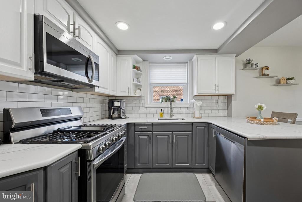 Stunning Colonial Located in Springfield Township, Delaware County! Welcome home to 487 E Springfield Road. This 3 bedroom, 2 full bathroom brick colonial is located in the heart of the Colonial Park neighborhood of Springfield. The location of this home is great, as it's only a short distance from several parks, highly rated public and private schools, shopping and restaurants. Can't forget about the easy access to major highways. The front exterior of this property shows off the shared portion of the driveway, but behind the privacy fencing a much larger, private driveway exists with plenty of space for parking (6+ spots) ... a HUGE benefit for being on a busy road! The privacy fence surrounds an incredibly large and spacious backyard that has a rear patio and a spacious storage shed, making the yard a great place for entertaining! If entering the home through the front door, you'll walk into a spacious and sunny living room with great "like new" carpeting. The living room leads to formal dining room with plenty of space for an 8+ person dining room table. The dining room leads into a recently remodeled kitchen with beautiful neutral colors, quartz countertops, and updated appliances. The bonus family room in the back of the home is the result of an addition from previous owners. This "bonus room" shows off a full bathroom, gas fireplace, and a great space for an office, workout area, playroom or as you'll see from the pictures of the current owners... a custom-built bar! The second-floor also boasts "like new" carpets, which has a generous size master bedroom, with refinished oak hardwoods and dual closets. Second bedroom has access to attic which is perfect for storage and both second and third bedrooms have ceiling fans and closet space. The basement is semi-finished and has a full bar, an area for a half bath (currently not in use) and laundry area. Make this your home today and be home for the holidays!