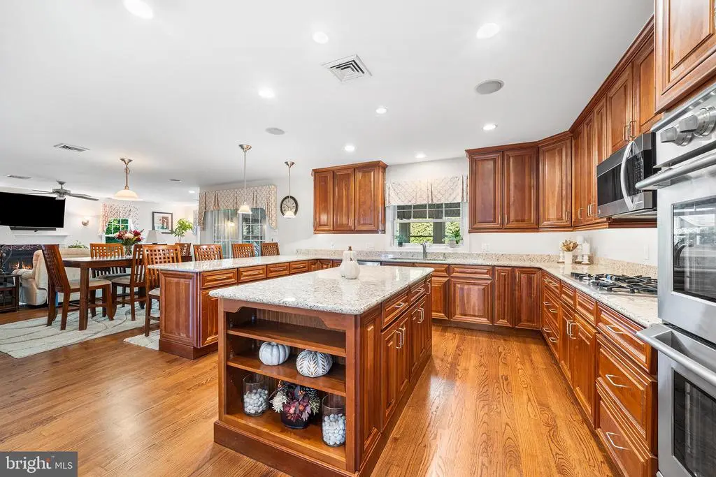 A HOME THAT HAS IT ALL!! Wonderful location in the desirable Haverford Township School District! Enter into the Center Hall from an inviting open front porch. To the right, a living room. To the left, a large, formal dining room with the ambience of a woodburning fireplace. Go straight ahead and find an open concept kitchen/family room. The large eat-in kitchen has abundant cabinetry , stainless steel appliances, gas range, microwave, double oven, dishwasher, garbage disposal, granite countertops, hardwood floors, pantry closet, an island and a large peninsula for casual meals as well as an outside exit to a side driveway. The warm and inviting family room with cathedral ceilings, gas fireplace flanked by oversized windows to allow plenty of natural light, power shades, loads of built-in cabinets and wine refrigerator allows for maximum relaxation. The first level in this house also boasts of an office, a powder room, and a 4 season sunroom with a gas heater. Exit the sunroom to chill on the back paver patio in the beautifully landscaped rear yard. Second level has 4 bedrooms, 3 bathrooms with double vanities, and a spacious laundry room for your added convenience. The primary bedroom has soaring cathedral ceilings giving it an amazing open feel, walk in closets, and an ensuite bathroom with a walk in shower, a separate jacuzzi tub, a heat lamp and a double vanity. There is a second bedroom with its own bathroom, and bedrooms 3 and 4 share a Jack and Jill bathroom. The basement is incredible! Beautifully finished with a home theatre screen. Fabulous entertaining space for parties or watching a movie or a game. There is also a powder room and wet bar as well as a large storage room. More amenities include replacement windows, beautiful landscaping, fenced yard. whole house generator, central air, 200 amp circuit breakers, gas hot water heater, gas hot water heat, bessler stairs to floored attic storage, many large closets, oversized shed, hardwood floors throughout and more! Close to shopping and transportation. Easy access to the Blue Route connecting you to both the turnpike and the airport. Be in Center City Philadelphia in 15 minutes. Walk to many restaurants! Not far from the Skatium, the newly renovated library, and the YMCA. AND, soon you will be able to enjoy a park setting directly across the street. Last but not least, the walkability of the desirable Brookline area of Haverford Township can't be overstated. You have to see this extraordinary brick and sided home that has everything you could want. See for yourself!!!