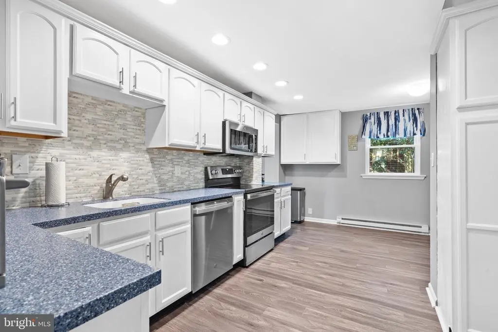 Welcome to this beautiful single-family home in the highly sought-after Lynnewood section of Havertown! From the moment you walk up the freshly sealed driveway, you’ll notice the charming front patio and small fish pond, setting the tone for the warmth and character inside. Step through the front door into a bright living and dining area that flows seamlessly into an eat-in kitchen complete with stainless steel appliances, tile backsplash and ample cabinetry. The first floor also offers a full bathroom with a newly glazed stall shower, a home office ideal for remote work or hobbies and a cozy den leading to your maintenance-free composite deck that is partially covered and equipped with a mounted TV - perfect for entertaining. Up the recently carpeted staircase, you’ll find four generously sized bedrooms, all with ceiling fans, plus an expanded full bath featuring a dual vanity and refreshed stall shower. The second-floor laundry also adds everyday convenience for your household. The finished lower level provides additional living space with newer carpeting, recessed lighting and a separate storage room with an abundance of built-in shelving. There’s a walkout to the backyard, making the basement both practical and easy to enjoy. As mentioned earlier, your trex deck off the den has modern railings and steps leading you to a concrete sitting area with a fire pit to relax on cool evenings in your vinyl, privacy fenced backyard. Other recent updates include: whole house re-wired (2022), all windows & exterior doors (2023), dual-zone AC (2024), roof with 50 year shingles (2025) and Delco Trimlights (2024) to help your house shine through all of the holidays! Situated in one of Havertown’s most desirable neighborhoods with walkable streets, excellent schools and easy access to shopping, dining, and parks - this home truly has it all!