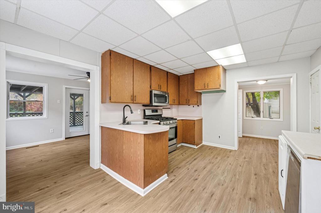 Your new home in Glenolden just hit the market! With 5 bedrooms and 2.5 bathrooms over 3 levels of finished space, plus an unfinished basement, this large home offers its next owner plentiful space to enjoy inside and out! The main level includes a bright living room with gas fireplace and lots of built-in shelving, and dining room with chair rail. The eat-in kitchen includes room for a table and leads to the adjacent family room with access to the deck for ease of flow when entertaining. On the second floor, you'll find 2 bedrooms and a spacious bathroom/laundry area with tub shower, dual sink vanity, and separate laundry room. The top level includes 3 additional bedrooms and second full bathroom. Additional features include ceiling fans, carpeting in all bedrooms, and unfinished basement. The home also includes plentiful outdoor spaces including a large covered front porch, deck with screened area and large fenced yard. Conveniently located around the corner from Glenolden train station. Don't miss this home! Be sure to make an appointment to see it today!