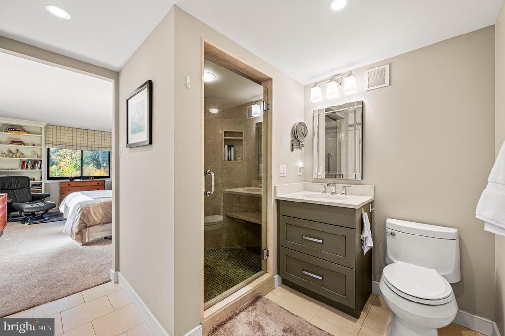 Bathroom - Walk-In Shower, Built-Ins, Master Bath(s), Wood Floors