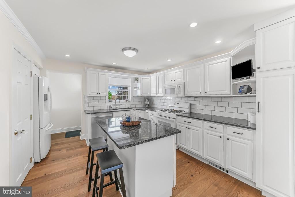Welcome to 565 Kirk Drive — a picture-perfect brick colonial in Springfield’s highly sought-after Rolling Green community. This beautifully maintained home blends timeless character with thoughtful modern updates throughout.The newly remodeled open-concept kitchen is anchored by a large center island with granite countertops, a gas range, abundant cabinetry with soft-close drawers and doors, and generous counter space,—making it a natural gathering spot for everyday living and entertaining. The main level also features new flooring throughout, a spacious living room with crown molding, a full bath, and a four-season addition with a vaulted ceiling and direct access to the driveway. Upstairs, you’ll find four nicely sized bedrooms, including an oversized primary bedroom with recessed lighting and tons of natural light. An updated hall bath and convenient second-floor laundry is tucked neatly behind double doors. Outdoor living shines with a covered front porch featuring a beadboard ceiling and lighting, a rear deck and concrete patio, and a fenced yard with shed. The one-car garage and private driveway offer convenient off-street parking. Recent major upgrades include a new roof, new HVAC system, and new sewer lateral, providing long-term peace of mind. All of this, just minutes from I-476, I-95, Springfield’s town center, local parks, great schools, and only one block from Rolling Green Golf Club. A move-in-ready home where quality updates meet classic Springfield charm.