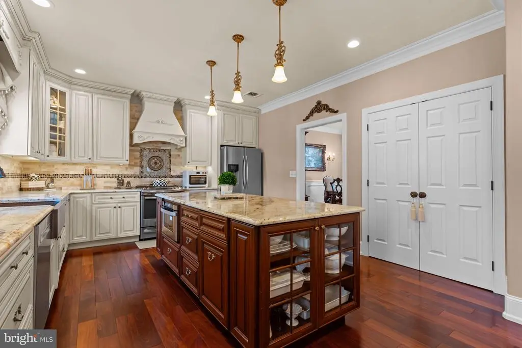 Experience the perfect blend of classic design and modern luxury in this beautifully updated Colonial, set in one of the area’s most desirable neighborhoods. Fully renovated in 2017, this home offers exceptional craftsmanship, custom finishes, and thoughtfully designed spaces ideal for both everyday living and entertaining. Step inside to find an open-concept layout that flows seamlessly between living areas. The family room features a custom wet bar with a sink, ice maker, and wine refrigerator—perfect for hosting gatherings. The spacious dining room accommodates a 10-person table, while the sitting room, complete with soaring ceilings and glass sliders, opens directly to the outdoor living area. The finished outdoor space is an entertainer’s dream, showcasing a gas fireplace, granite countertop, and 5-burner stainless steel gas grill—all surrounded by a natural stone patio and tranquil pondless waterfall. Throughout the home, custom crown molding, ironwork, and built-ins add timeless character. Closets feature custom wood shelving and fit-outs for exceptional organization. The master suite is a retreat of its own, highlighted by large solid wood French doors, an extra-large walk-in closet, and a luxurious bathroom with dual shower heads. Additional highlights include multiple bonus rooms such as a gym with 11.5-foot ceilings and a craft room, electric candles in the windows, and plantation shutters throughout. With three floors of finished living space, a welcoming front porch, and an unfinished basement for future possibilities, this home offers comfort, functionality, and style in every detail. Located just down the street from Merion Golf Course and within walking distance to a park and playground, this home combines luxury living with everyday convenience. Truly a one-of-a-kind property designed for those who love to entertain and live beautifully.