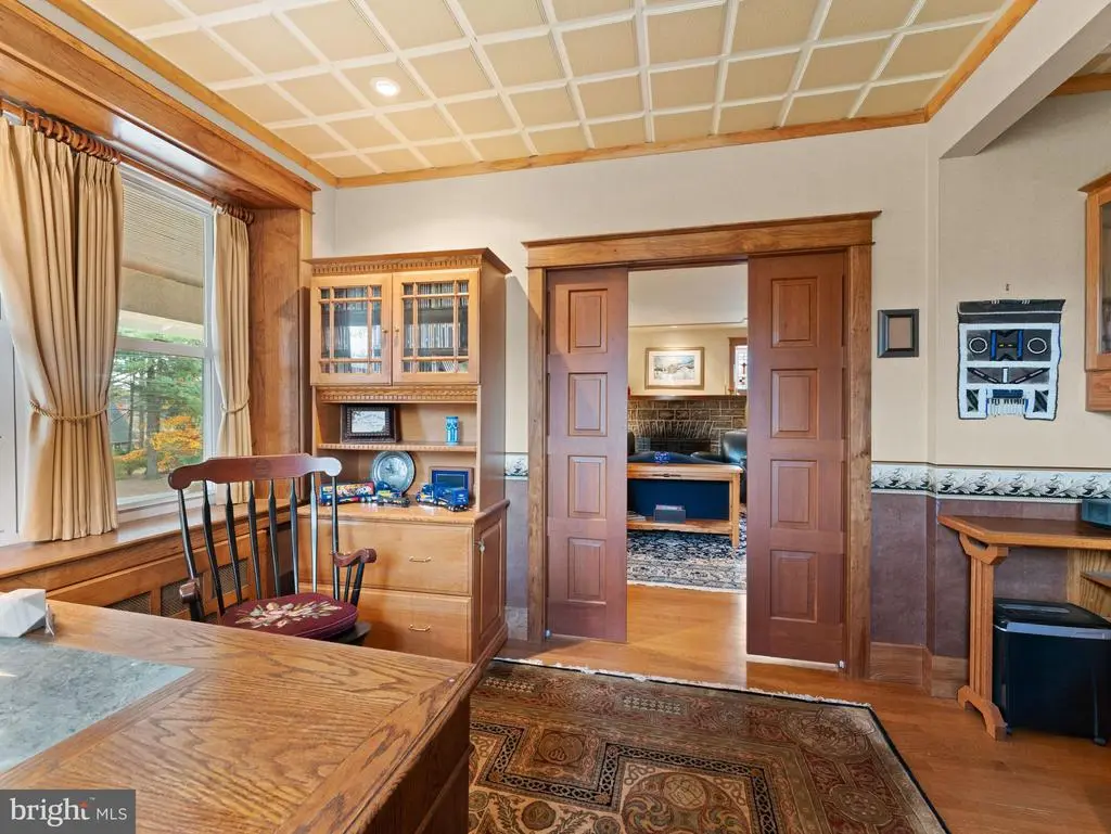 Come to tour this exquisite Craftsman style home. The architecture celebrates handcrafted millwork throughout, natural materials: cherry, oak, pecan wood trim throughout and a harmonious blend of form, function, timeless aesthetic and enduring quality. custom cabinetry, warming fireplace, well designed spaces for family bonding as well as entertaining, richly detailed in its aesthetic beauty. This high quality home offers, hardwood floors, oak staircase, bead board ceilings, pocket doors, custom designed stained glass windows accenting the stone fireplace. Granite counters in the kitchen and baths. The incredible covered front porch is a lovely spot to enjoy the front mature landscaping and bird watch. Enter into the beautiful living room and dining room offering a harmonious blend of form and function. Opposite the living room is a sunny office with cherry wood pocket doors and custom shelving. Continue to the rear of the house to a hallway with floor to ceiling storage cabinetry. Main level bedroom, full bath with tile flooring and shower, main level laundry room with a sink and two windows. Continue to the breakfast room with a lovely view of the rear patio, flowing into the kitchen table nook and gorgeous kitchen with custom cherry cabinets, deep drawers, coffee station, double sink, garbage disposal, granite counter with a marble slab, gas range with double ovens, microwave and exit door to the large corner deck, decking replaced & stained 2024, with wide stairs to the rear driveway, two car garage and a private patio area. Walk up the beautiful oak staircase to the owner's suite with built in bookshelves, a dressing room, walk in closet and a full bath with a large, tiled walk-in shower. A third and fourth bedroom both offers built in bookshelves and walk in closet, a hall bath with two sinks and tile tub surround. The basement has a stone foundation, bilco exit doors, french drain, windows, workshop area with work bench, darkroom with sink. Exterior freshly painted, Refrigerator, range and dishwasher 2 years new. Walking distance to the Roosevelt Community Center library with programs for children, popular Wayside Market eatery. Short drive Media Borough for restaurants and shops, Linvilla Farm, commuter train to Philadelphia. *Professional photos to come. *Showings begin November 7th.