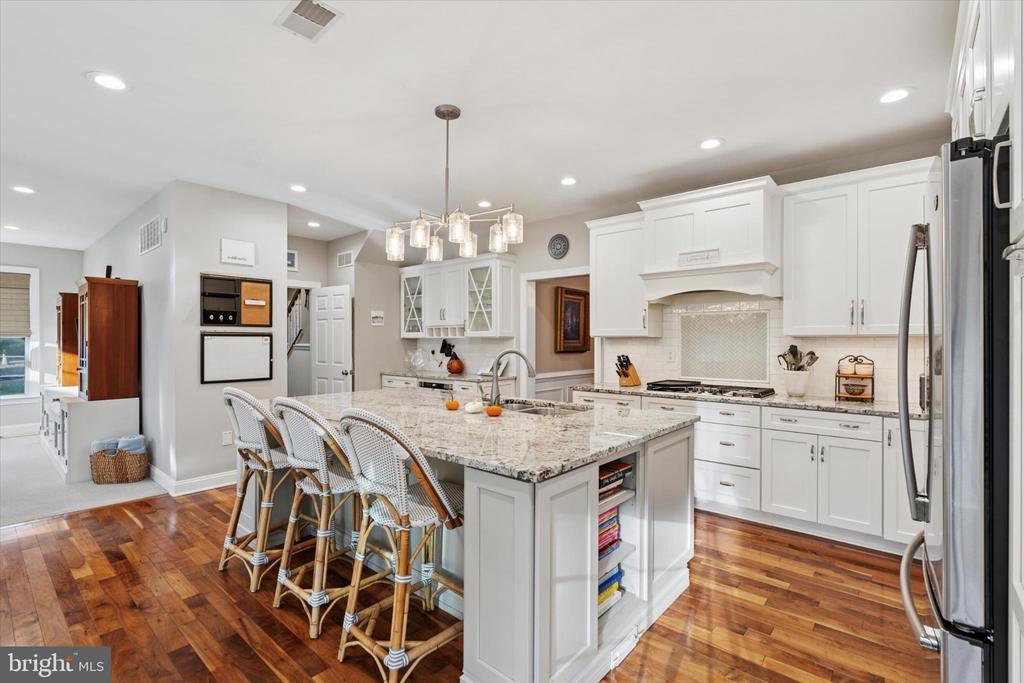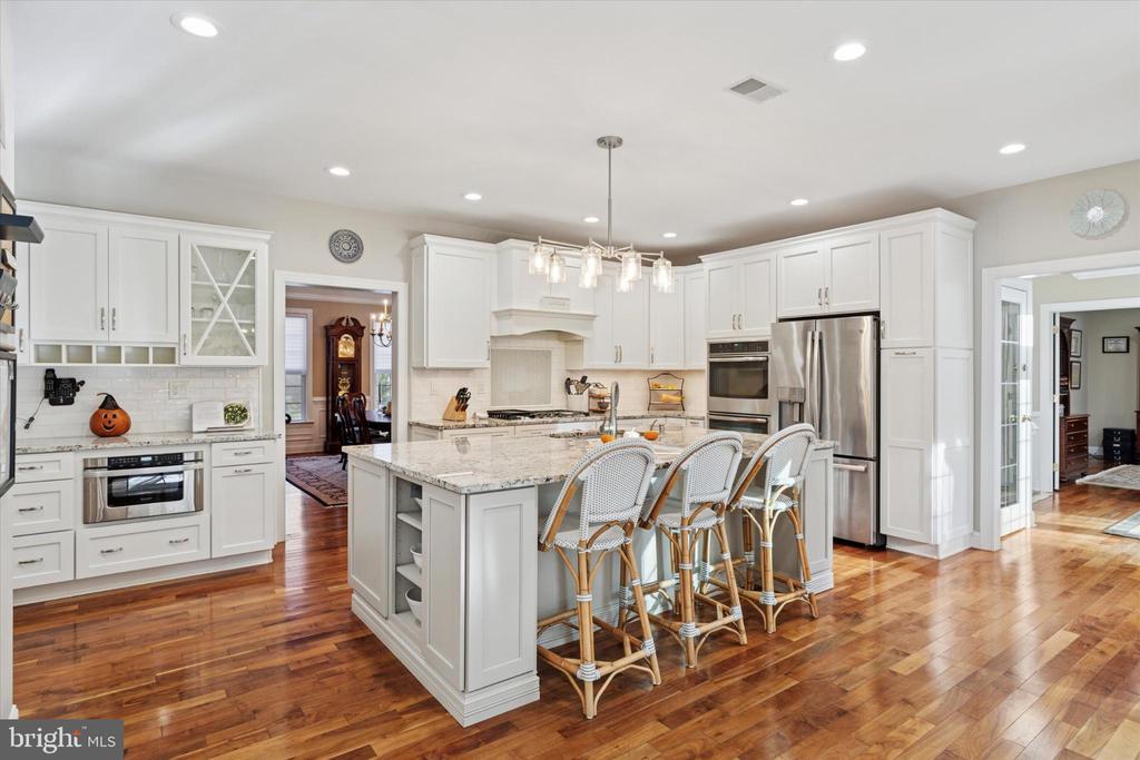Welcome to this showstopper of a home in the highly sought-after Reserve at Hunter’s community, located within the award-winning Garnet Valley School District. Perfectly situated on a quiet cul-de-sac, this property offers elegance, space, and luxury around every corner. Step through the front door into a stunning two-story foyer with rich black walnut hardwood floors. The main level features formal living and dining rooms adorned with crown molding and recessed lighting—ideal for hosting gatherings. A private office/study with double doors provides a quiet retreat for work or study. At the heart of the home is a completely renovated chef’s kitchen, showcasing an expansive 102-inch island, white cabinetry, granite countertops, a double oven, 5-burner gas cooktop, built-in drawer microwave, and stainless steel refrigerator. The light-filled breakfast room, highlighted by a ship-lapped tray ceiling, opens to a cozy family room with a gas brick fireplace and matching ship-lapped surround that extends to the ceiling. Completing the main level is a stylish powder room, a mudroom with a built-in bench and three open lockers, as well as access to driveway or to the immaculate three-car garage and secondary staircase. Upstairs, the luxurious primary suite is a true retreat—featuring tray ceilings, a sitting area, two walk-in closets, and a beautifully renovated spa-style bathroom with dual quartz vanities, a tiled walk-in shower, heated floors, a ThermoMasseur air jet tub, linen closet, and private water closet. Four additional spacious bedrooms, each with large closets, share two updated full bathrooms (one Jack-and-Jill and one hall bath with quartz vanity). A conveniently located second-floor laundry room with cabinetry and new Speed Queen washer and dryer completes this level. The fully finished walk-out basement offers over 1,600 square feet of additional living space. Enjoy a built-in entertainment center, a second kitchen/butler’s pantry with granite counters, refrigerator, and dishwasher, plus areas for gaming, fitness, or entertaining. A bonus room with an attached full bath makes the perfect guest suite, playroom, or second office. There’s also a large unfinished storage area for all you additional storage needs. Outside, the paver patio is perfect for entertaining or relaxing while overlooking your private, tree-lined backyard. With a three-car garage, a wide driveway, and a peaceful cul-de-sac location, this home combines beauty, function, and tranquility. Close to major routes, shopping, and dining, this spectacular home & property truly has it all—style, space, and sophistication. Don’t miss the chance to make this exceptional Garnet Valley home yours!