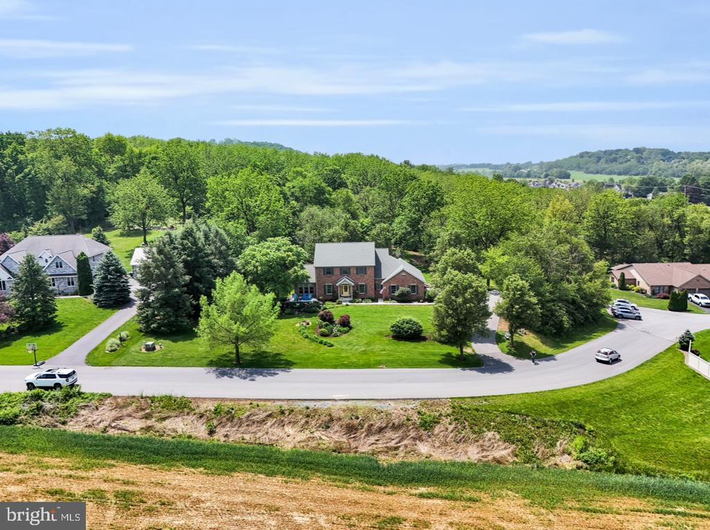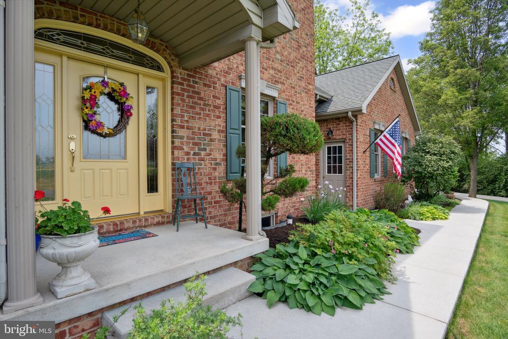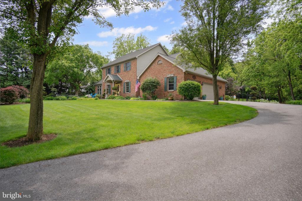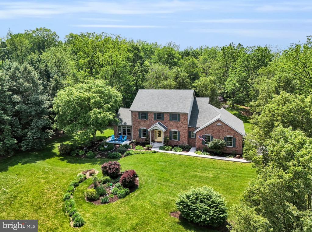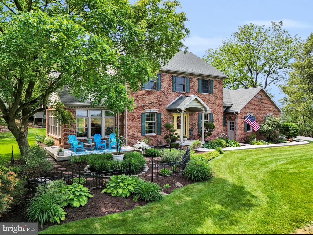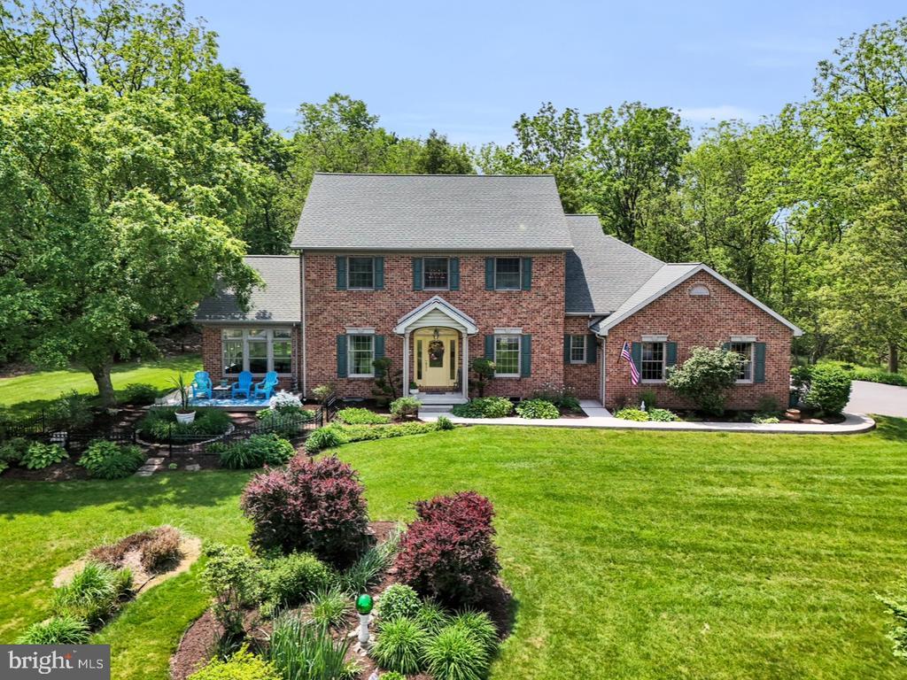 The designers of this elegant custom brick Colonial home blended architectural treasures with modern construction for a one-of-a-kind home with beauty, character, and quality. These captivating architectural pieces were collected throughout Pennsylvania and the Tri-state area, and they were designed into the house upon construction. Many authentic accents were acquired from noteworthy locations such as Philadelphia, Hershey, and Gettysburg. Highlights include striking vintage mantels, noteworthy period lighting, ornate glass doors, and stunning stained-glass windows. Set on a scenic 1.37-acre partially wooded lot with a tranquil garden setting, this home offers 3 bedrooms and 3 full bathrooms across 2,961 total square feet of thoughtfully designed living space. The open-concept floor plan is anchored by soaring 9’6” ceilings, a grand open foyer, and abundant natural light pouring through large windows that frame the peaceful surroundings. Hardwood ash flooring and ceramic tile carry throughout the main level, complementing the rich textures, timeless architectural details, and three fireplaces. The kitchen features custom built solid oak cabinets with an abundance of storage, granite countertops which flow seamlessly into the living and dining areas—perfect for entertaining or everyday living. The light-filled peaceful bedroom suite is spacious and includes both double closets and a generous walk-in closet. A dedicated home office provides a quiet space for work or study, while the lower-level recreation room or movie room offers a cozy retreat. Enjoy relaxing afternoons in a spacious four-season sunroom, surrounded by sparkling stained-glass windows, designed by a local artisan. Experience eight-foot pocket doors, crafted hardwood crown molding with dentals, and custom oak trim moldings milled especially for this home. Appreciate a stunning 130-piece beveled door designed into the interior, repurposed from a Philadelphia mansion. Step outside to enjoy multiple brick patio areas, including a private rear patio that feels like a secluded garden escape, while the front patio offers picturesque landscapes. Additional highlights include a durable brick exterior and natural landscaping which enhance the home’s beautiful curb appeal, with an oversized three-car garage. Perfectly located with convenient access to I-81, this home offers a rare opportunity to own a one-of-a-kind custom-built residence, where every detail has been curated for charm, quality, and timeless appeal.