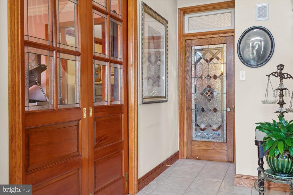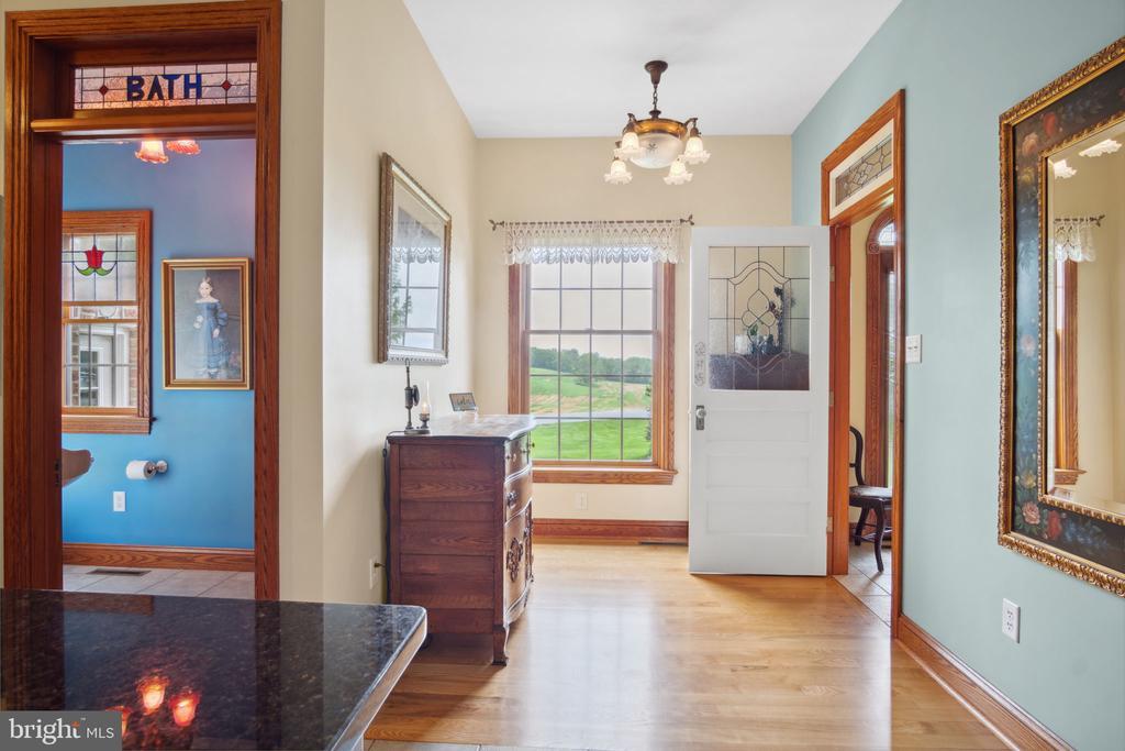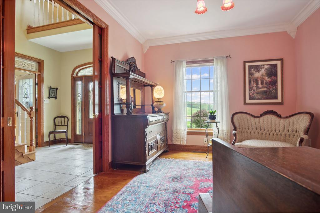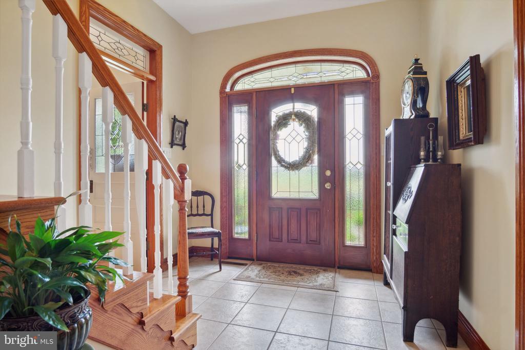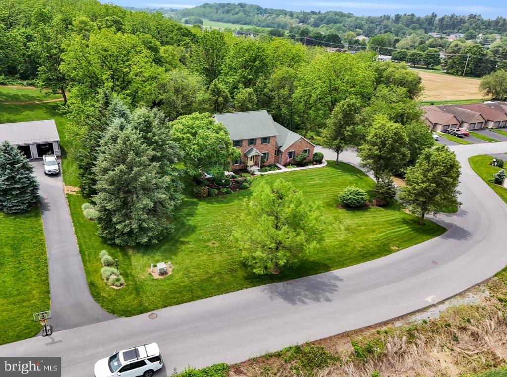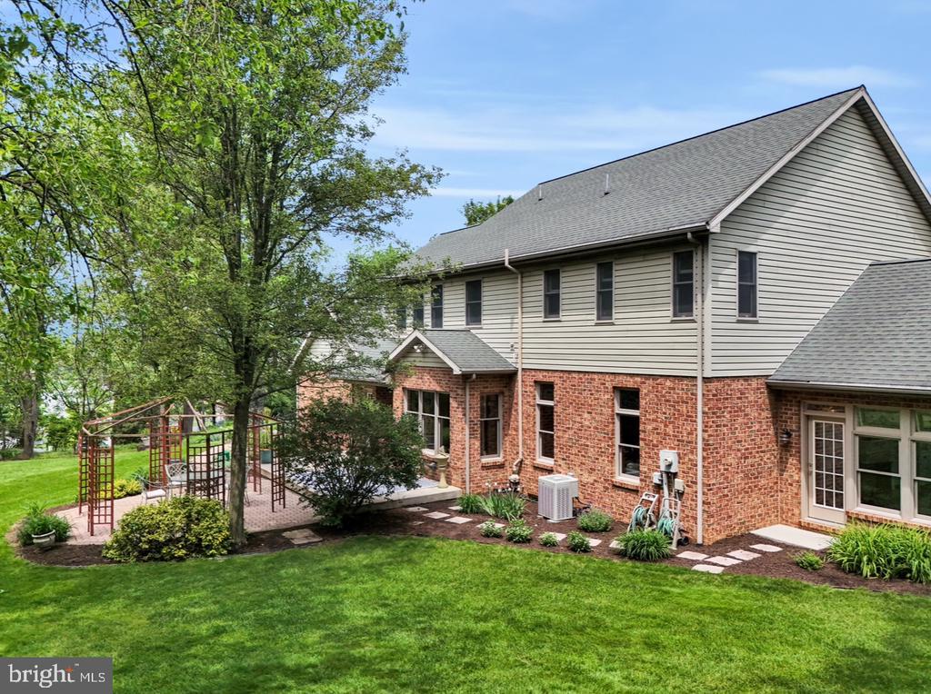 The designers of this elegant custom brick Colonial home blended architectural treasures with modern construction for a one-of-a-kind home with beauty, character, and quality. These captivating architectural pieces were collected throughout Pennsylvania and the Tri-state area, and they were designed into the house upon construction. Many authentic accents were acquired from noteworthy locations such as Philadelphia, Hershey, and Gettysburg. Highlights include striking vintage mantels, noteworthy period lighting, ornate glass doors, and stunning stained-glass windows. Set on a scenic 1.37-acre partially wooded lot with a tranquil garden setting, this home offers 3 bedrooms and 3 full bathrooms across 2,961 total square feet of thoughtfully designed living space. The open-concept floor plan is anchored by soaring 9’6” ceilings, a grand open foyer, and abundant natural light pouring through large windows that frame the peaceful surroundings. Hardwood ash flooring and ceramic tile carry throughout the main level, complementing the rich textures, timeless architectural details, and three fireplaces. The kitchen features custom built solid oak cabinets with an abundance of storage, granite countertops which flow seamlessly into the living and dining areas—perfect for entertaining or everyday living. The light-filled peaceful bedroom suite is spacious and includes both double closets and a generous walk-in closet. A dedicated home office provides a quiet space for work or study, while the lower-level recreation room or movie room offers a cozy retreat. Enjoy relaxing afternoons in a spacious four-season sunroom, surrounded by sparkling stained-glass windows, designed by a local artisan. Experience eight-foot pocket doors, crafted hardwood crown molding with dentals, and custom oak trim moldings milled especially for this home. Appreciate a stunning 130-piece beveled door designed into the interior, repurposed from a Philadelphia mansion. Step outside to enjoy multiple brick patio areas, including a private rear patio that feels like a secluded garden escape, while the front patio offers picturesque landscapes. Additional highlights include a durable brick exterior and natural landscaping which enhance the home’s beautiful curb appeal, with an oversized three-car garage. Perfectly located with convenient access to I-81, this home offers a rare opportunity to own a one-of-a-kind custom-built residence, where every detail has been curated for charm, quality, and timeless appeal.