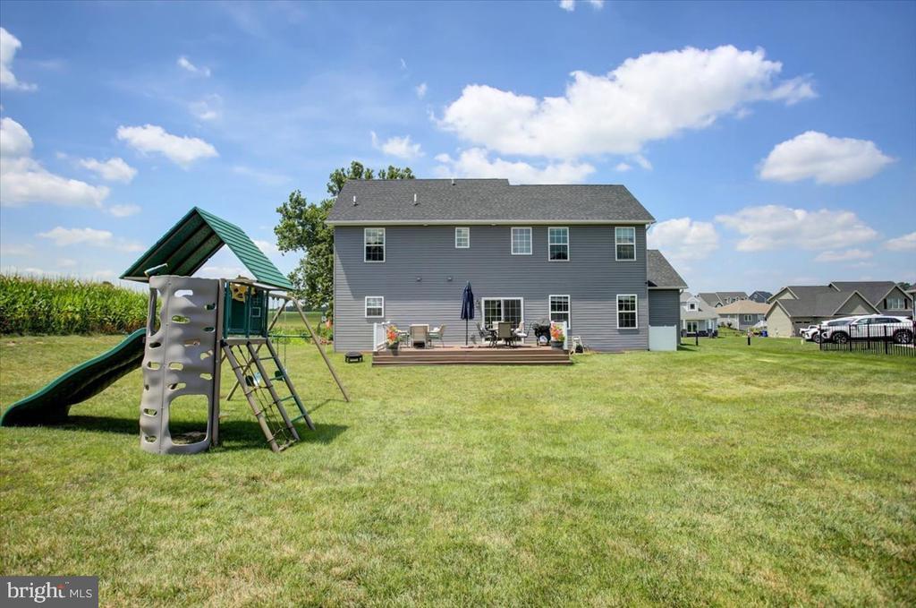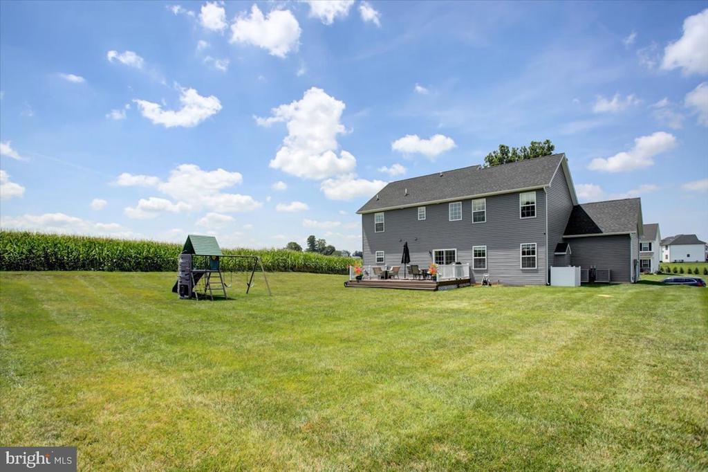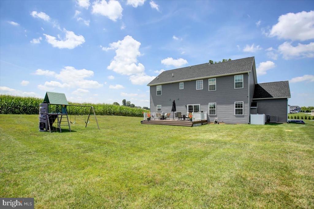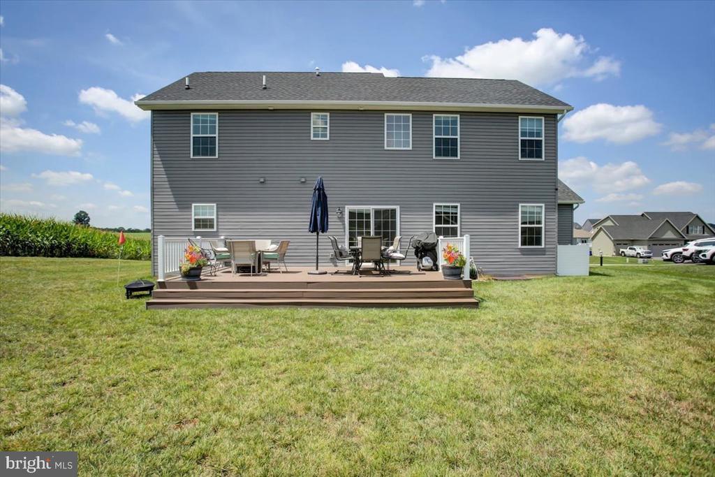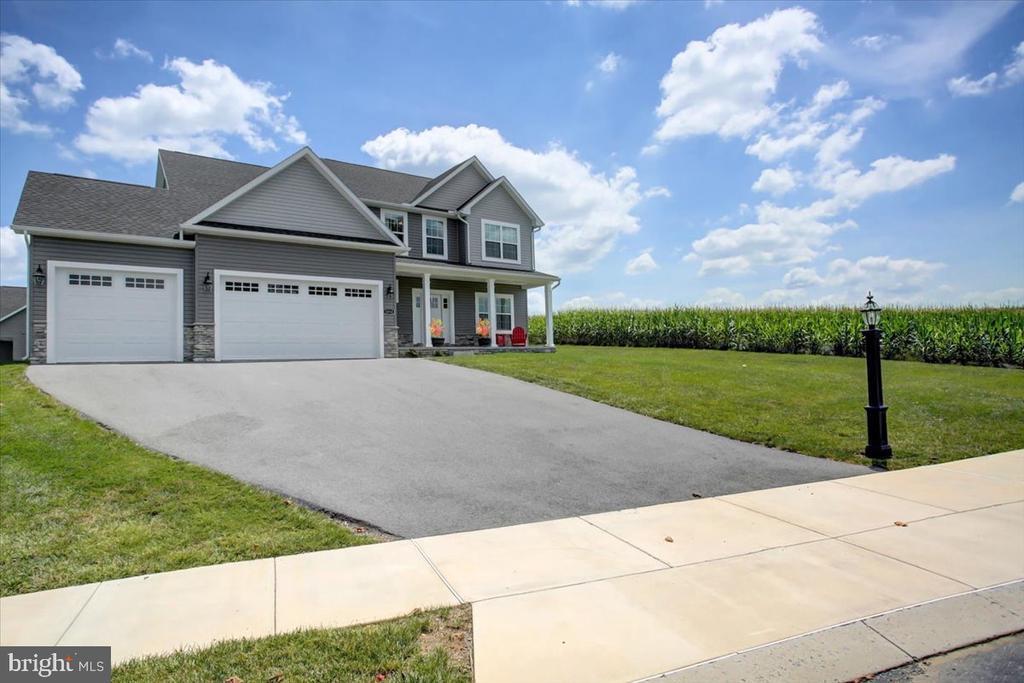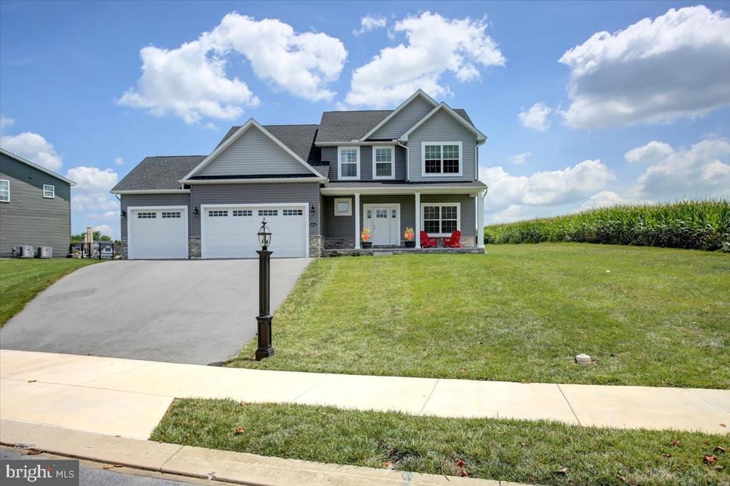 Welcome to 1014 Divinity Dr, a stunning 2022-built home nestled in the highly sought-after Heritage Estates neighborhood in Greencastle. This meticulously maintained property sits on a beautiful end lot, surrounded by serene cornfields, offering breathtaking views. From the moment you step onto the covered front porch, you’ll feel the charm of this modern home, designed with top-end finishes throughout. Inside, the spacious foyer entry leads to an open-concept main floor featuring a formal dining room, a gourmet kitchen with high-end finishes and a large island, a bright nook, and a welcoming living room—perfect for both everyday living and entertaining. Upstairs, the primary suite is a true sanctuary, complete with tray ceilings, a built in closet system, a luxurious en-suite bathroom with a jetted tub, walk-in shower, and double vanities. The second floor also includes three additional well-sized bedrooms, a full bathroom and a laundry room. The finished basement offers even more living space, including a bedroom, a full bathroom, a cozy living room, and an extra storage room. Outside, the Trex deck at the rear of the home provides the perfect spot for outdoor relaxation, overlooking the picturesque cornfields. With 5 spacious bedrooms, 4 bathrooms, and a 3-car garage, this home offers everything you need for modern living in a tranquil setting. Don’t miss your chance to call this beauty home—schedule a private tour today!
